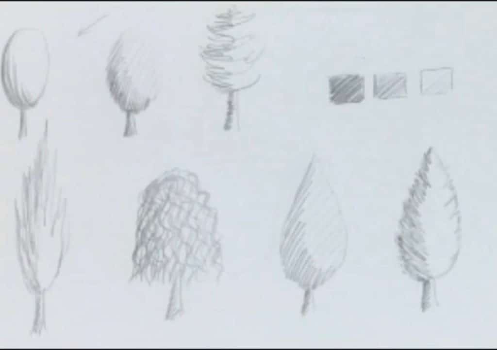 آموزش طراحی با مداد سیاه | طراحی 8 مدل درخت ساده و آسان