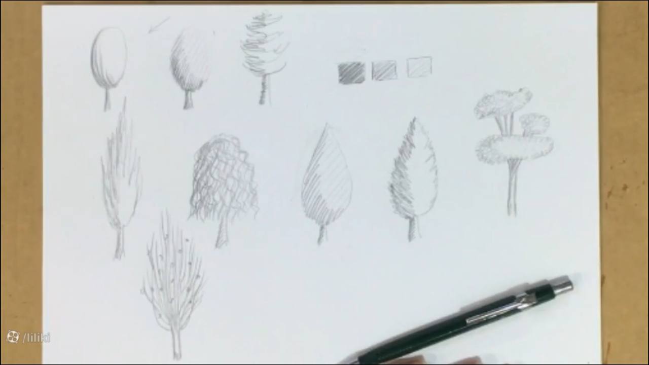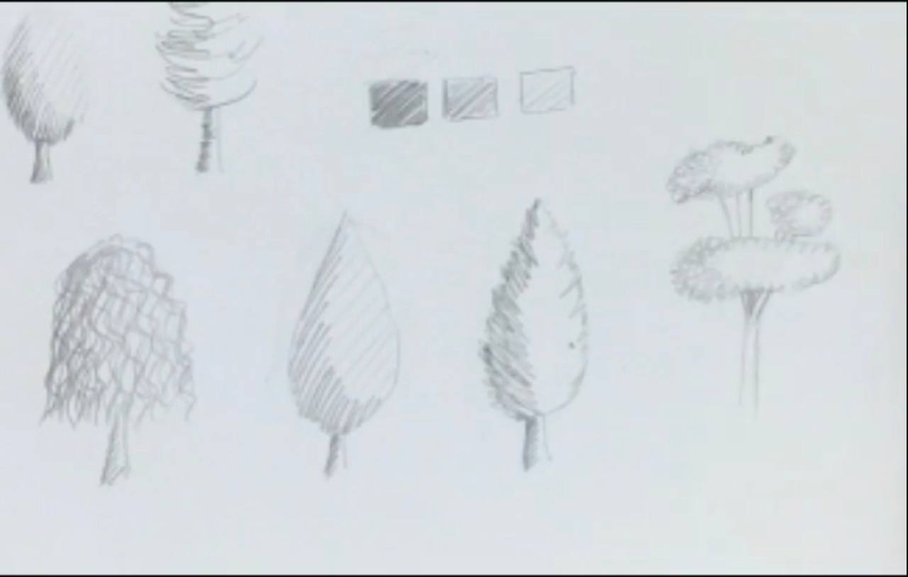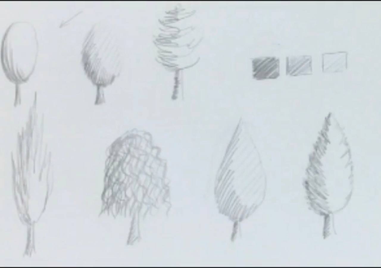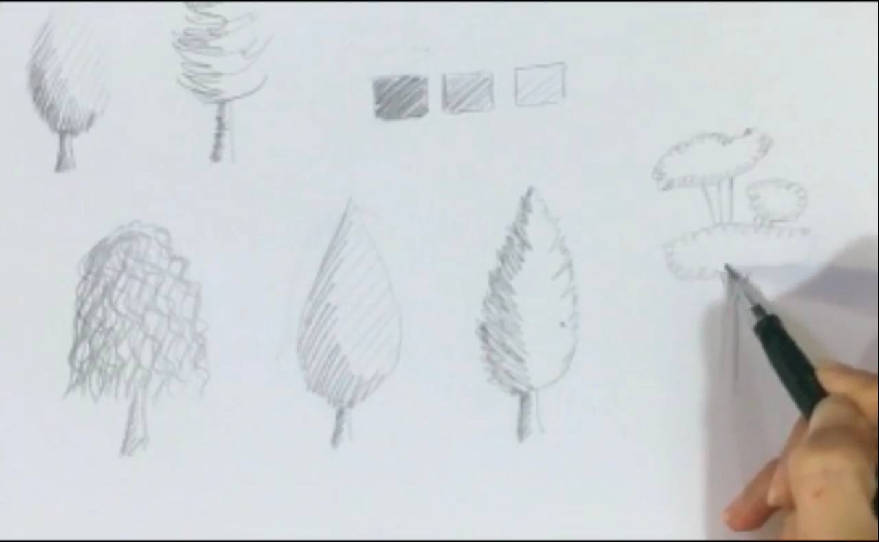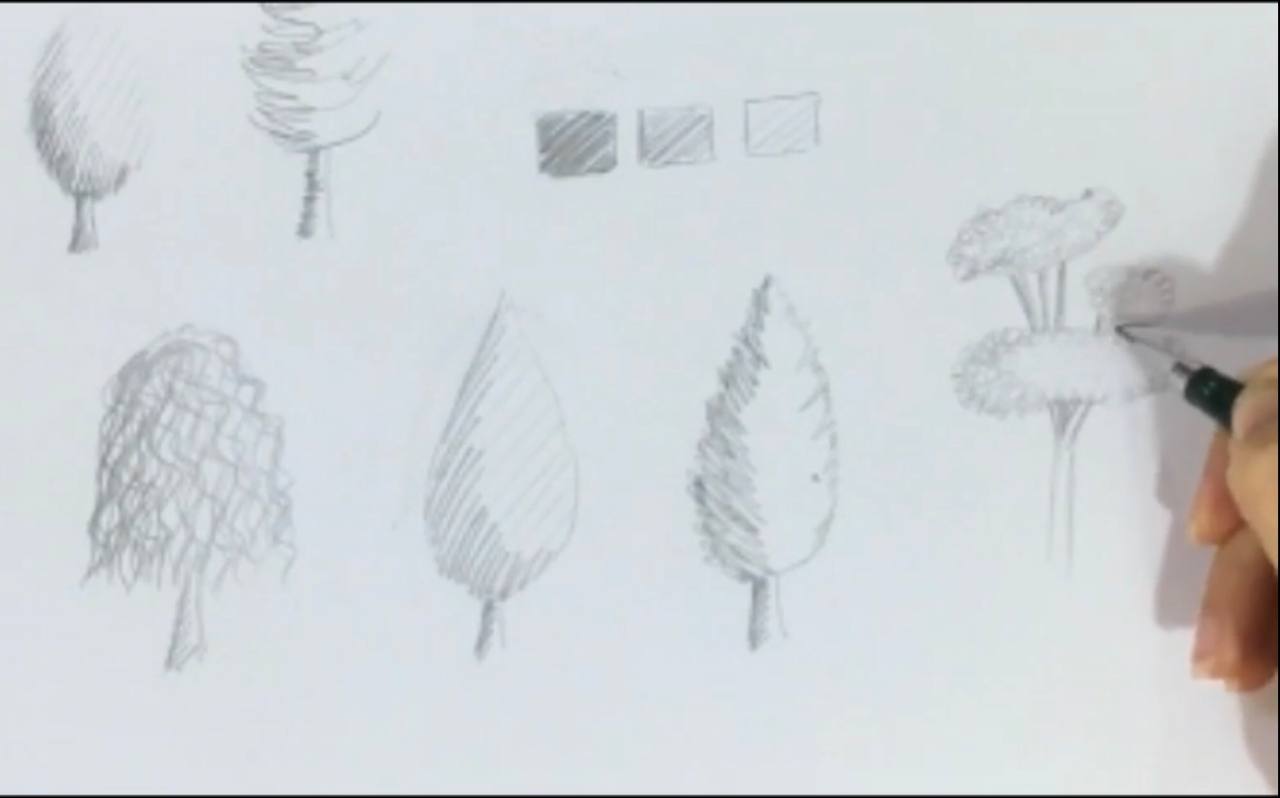 امروز در این ویدئو یاد می گیریم چند مدل درخت در حالت های اسکیس یا اسکچ طراحی کنیم. در این حالت درخت را هاشور سایه میزنیم. می تونین هم از مداد اتود، هم راپید و هم مداد طراحی و هر کدام که دوست دارید استفاده کنید. این طراحی بسیار مناسب برای کارهای سرعتی است.