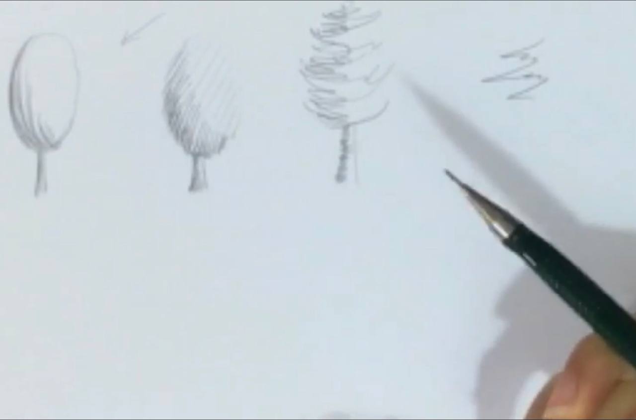 آموزش طراحی با مداد سیاه | طراحی 8 مدل درخت ساده و آسان
