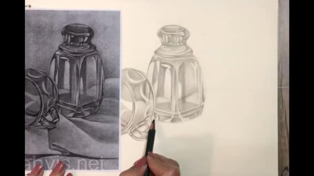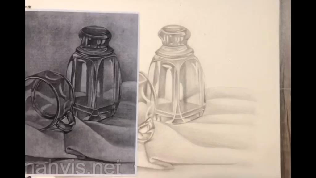 باید این انتخاب تیرگی و روشنی ها در کنار هم به شکلی باشد که زمانی که بیننده به طرح یا نقاشی نگاه می کند تفاوت بین جنسیت های شیشه و پارچه برایش قابل تشخیص باشد.