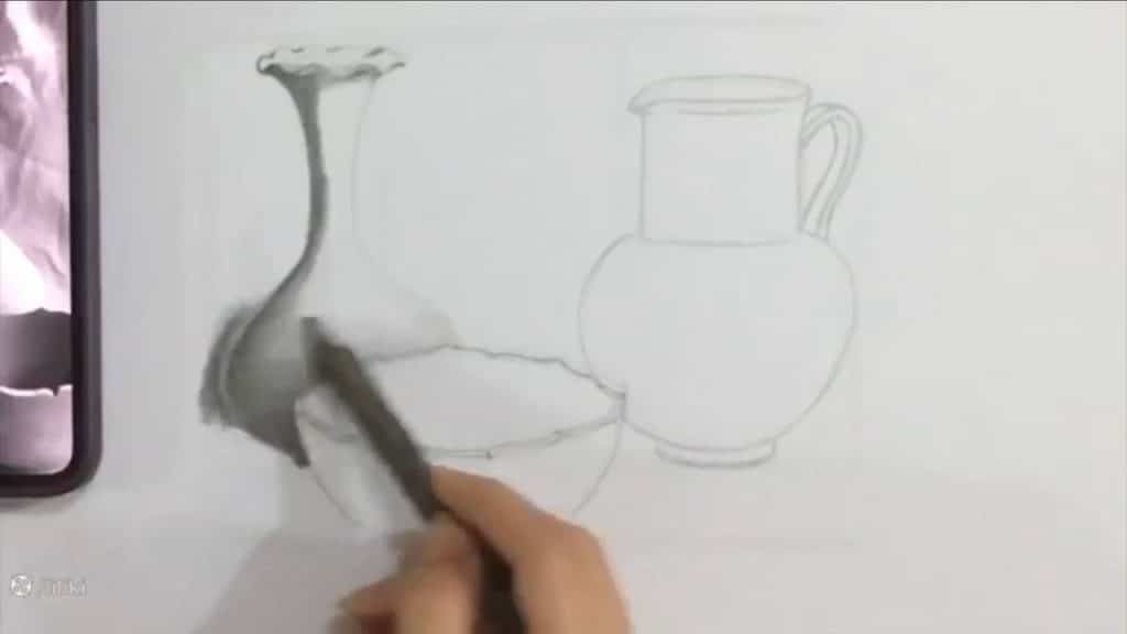 آموزش نقاشی کوزه و لیوان ، ظرف سفالی با مداد سیاه و سایه روشن قسمت دوم