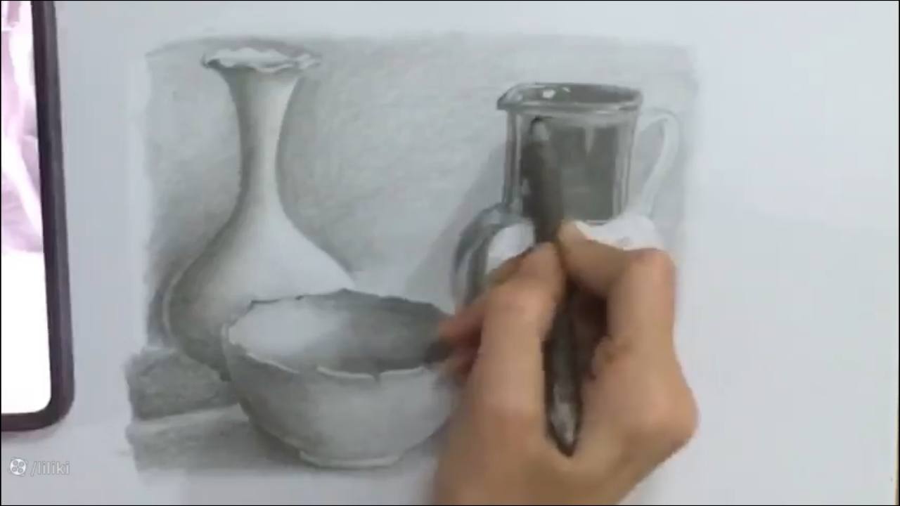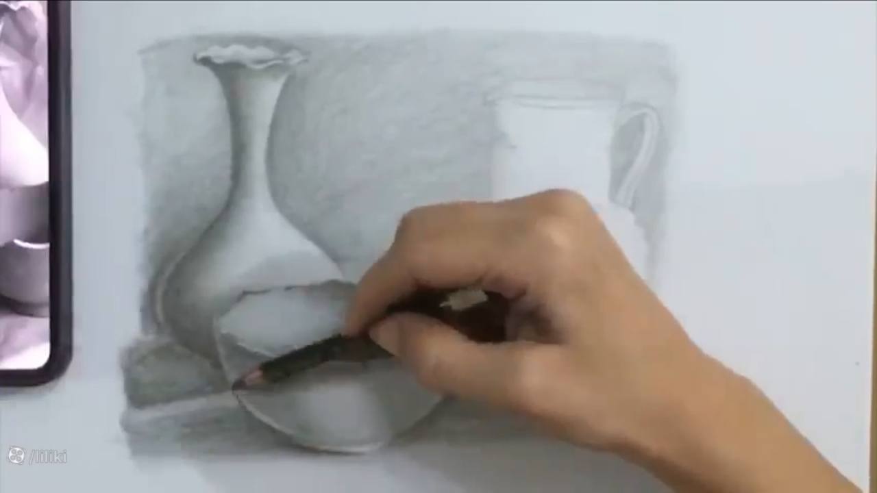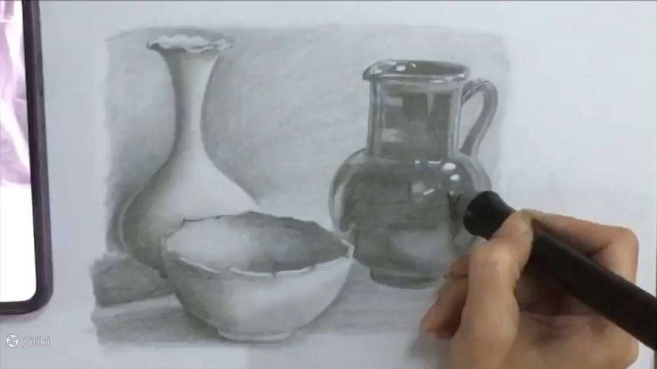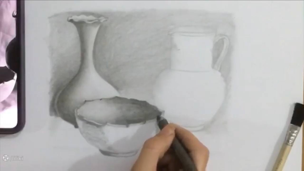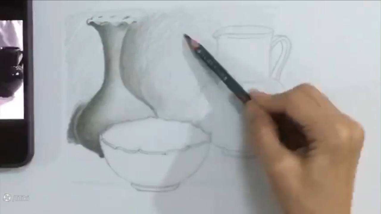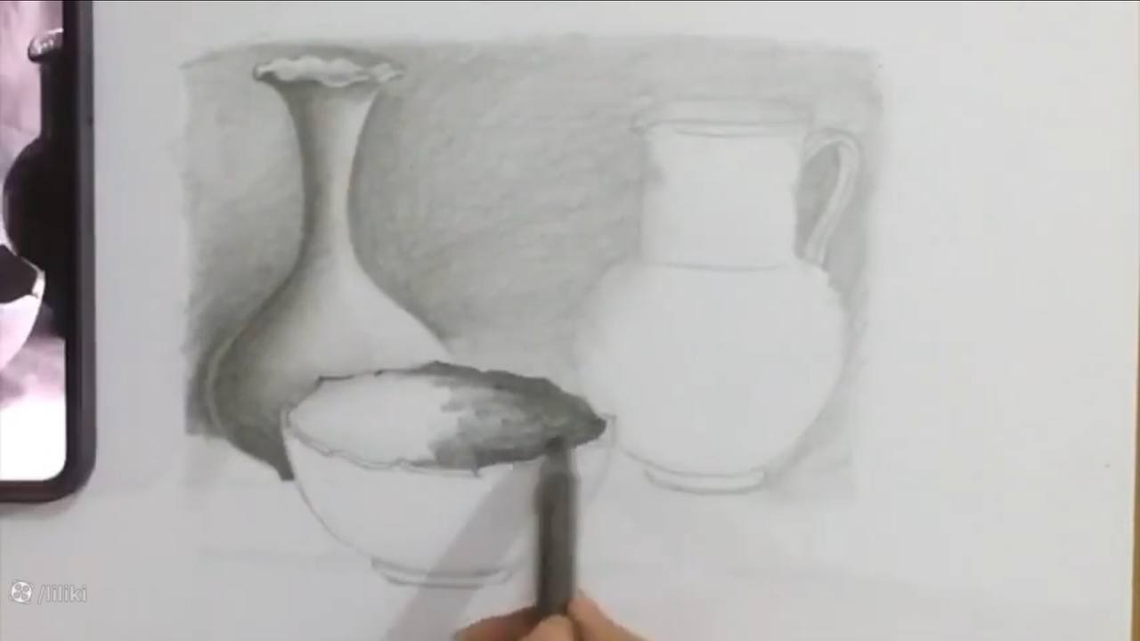آموزش نقاشی کوزه و لیوان ، ظرف سفالی با مداد سیاه و سایه روشن قسمت دوم