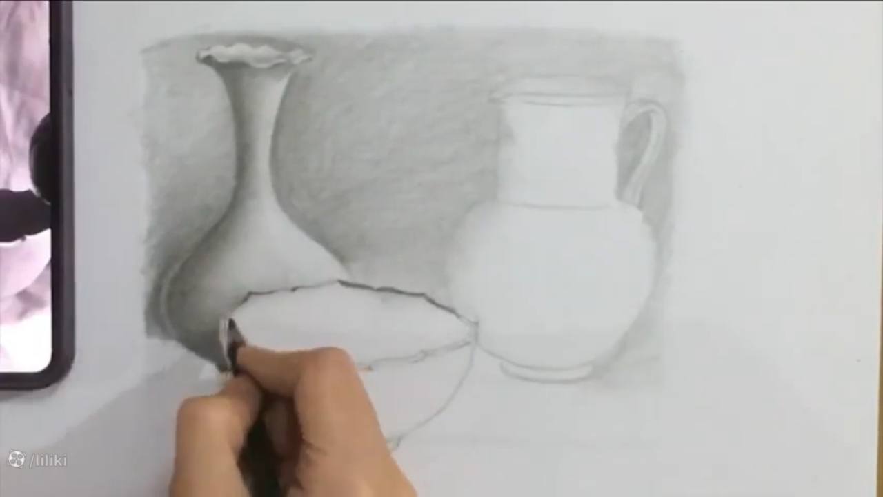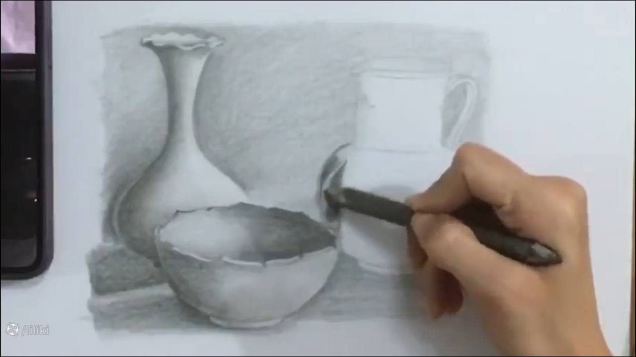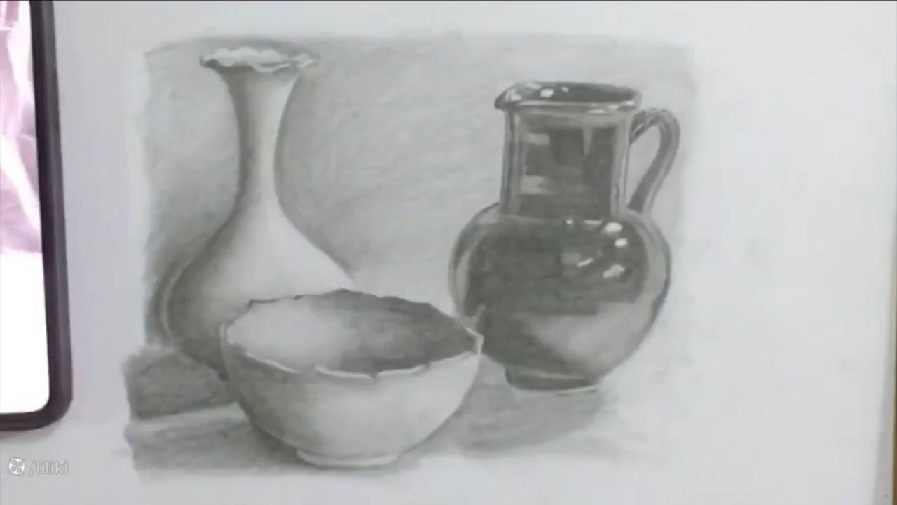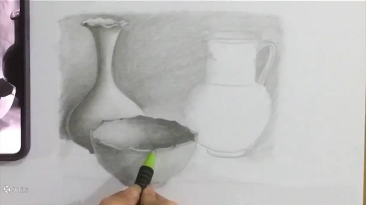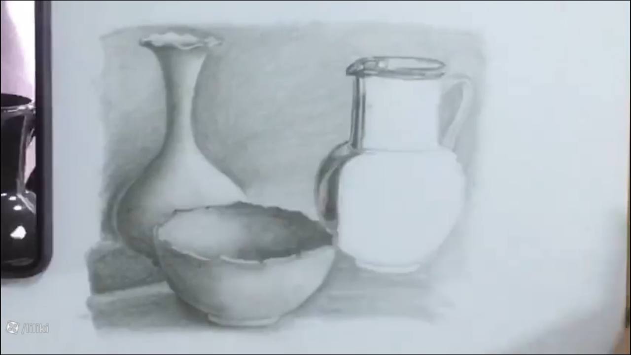 آموزش نقاشی کوزه و لیوان ، ظرف سفالی با مداد سیاه و سایه روشن قسمت دوم