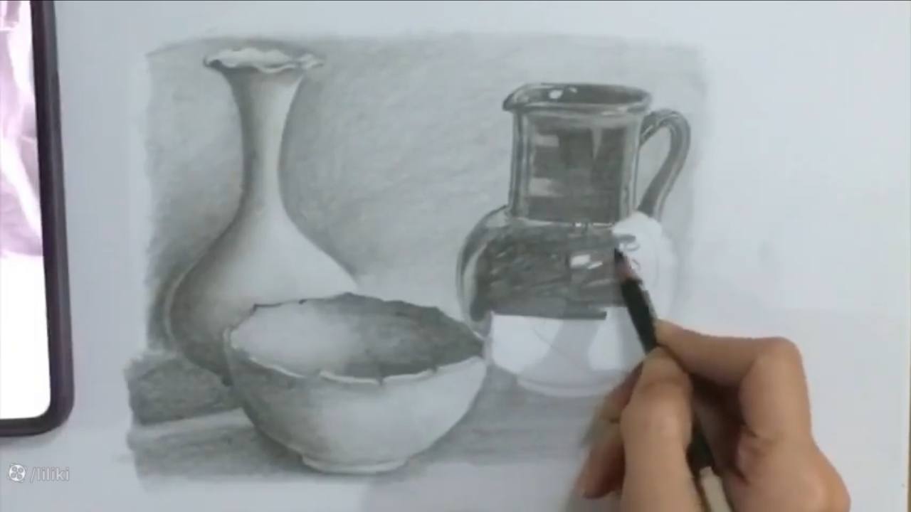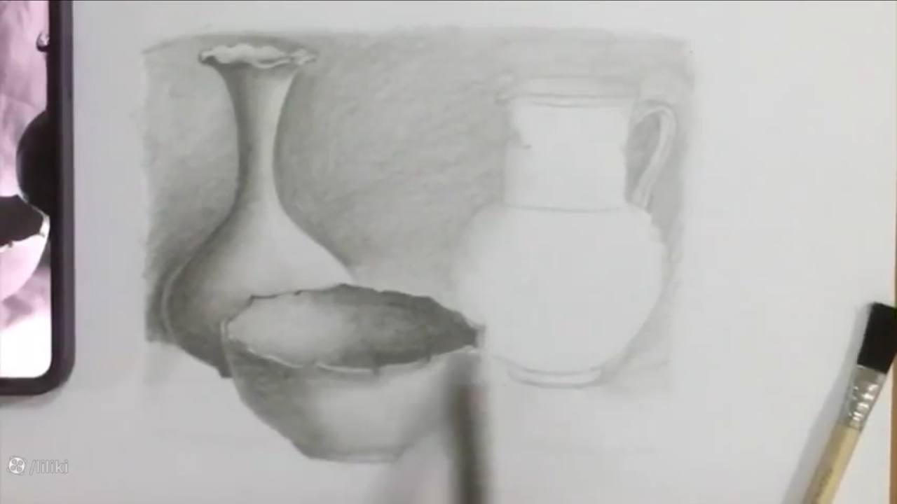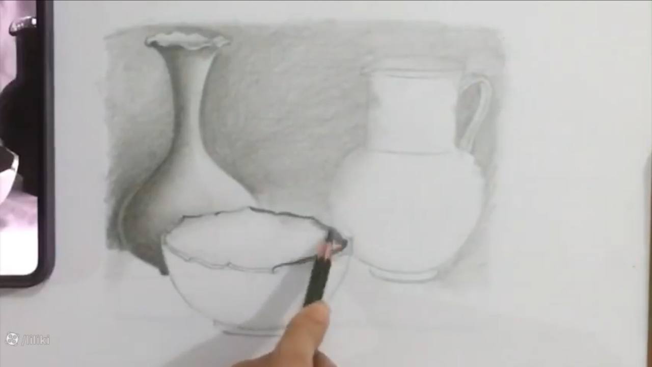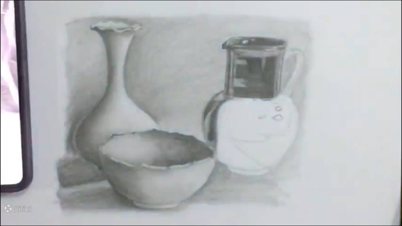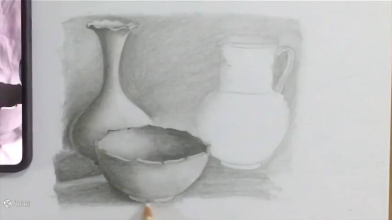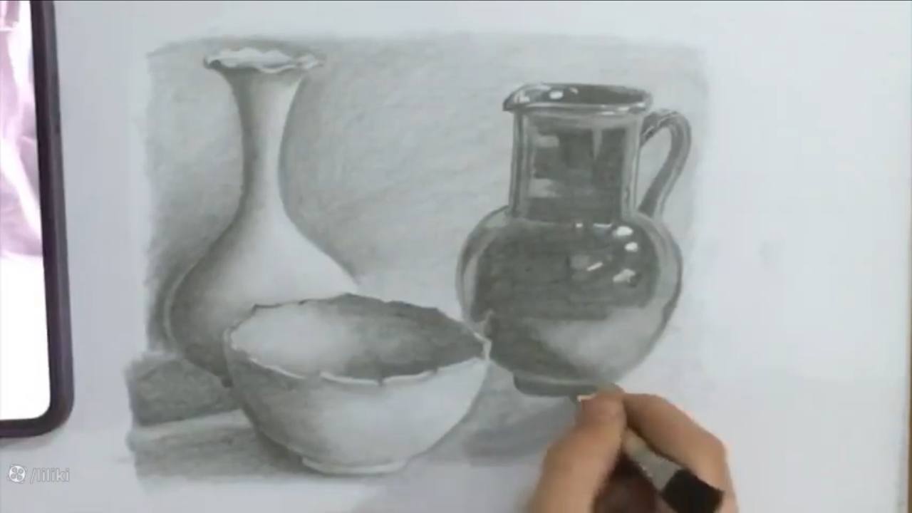 آموزش نقاشی کوزه و لیوان ، ظرف سفالی با مداد سیاه و سایه روشن قسمت دوم