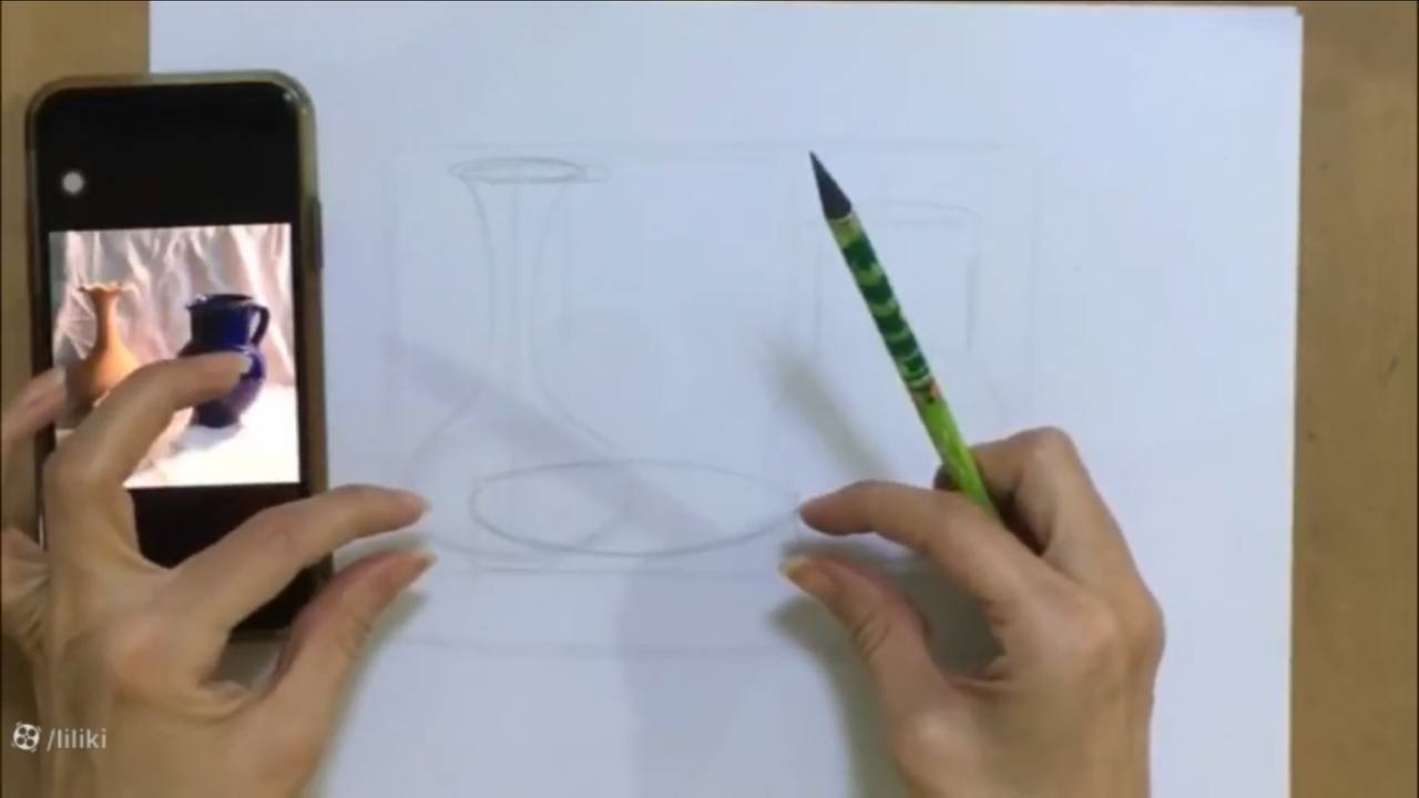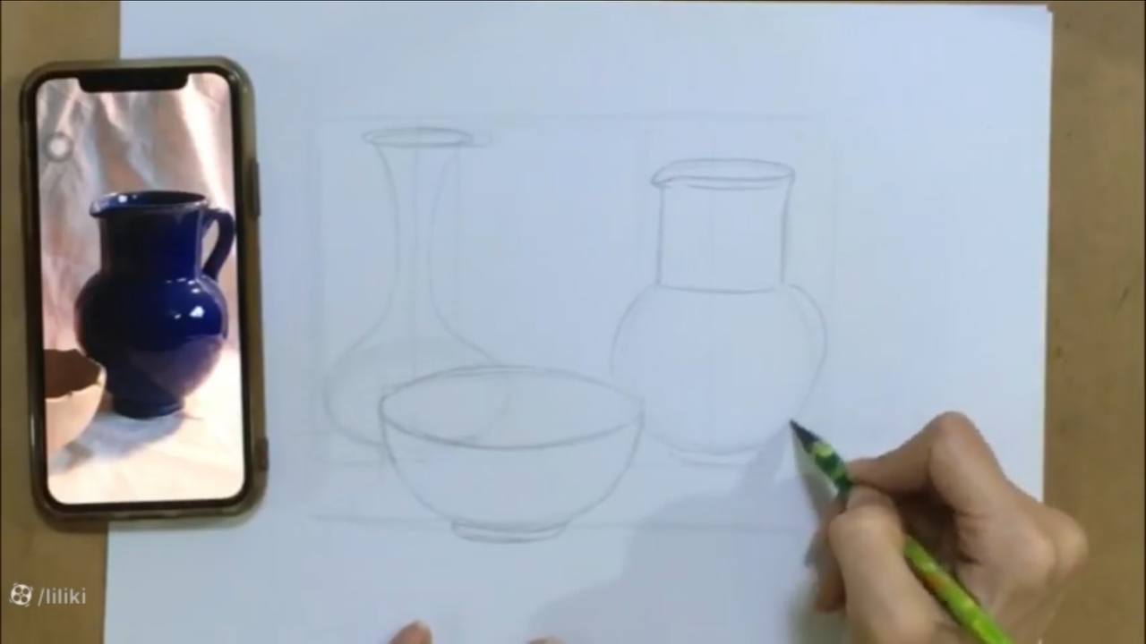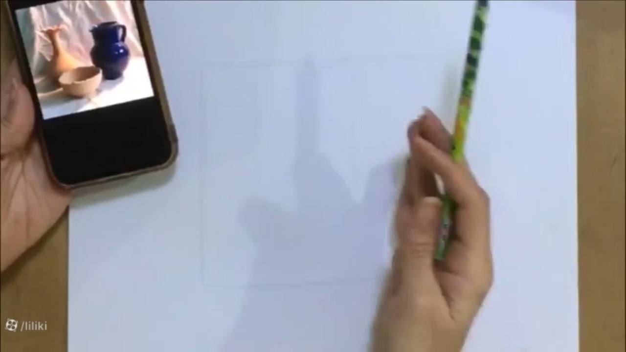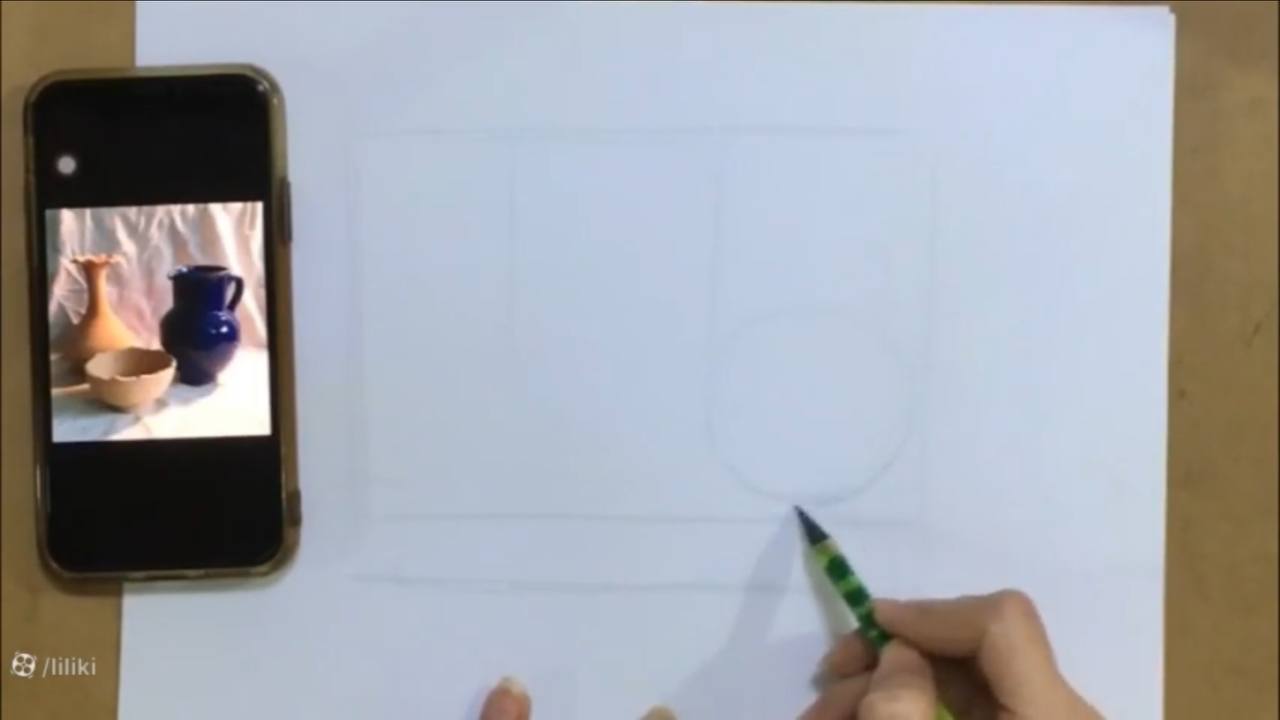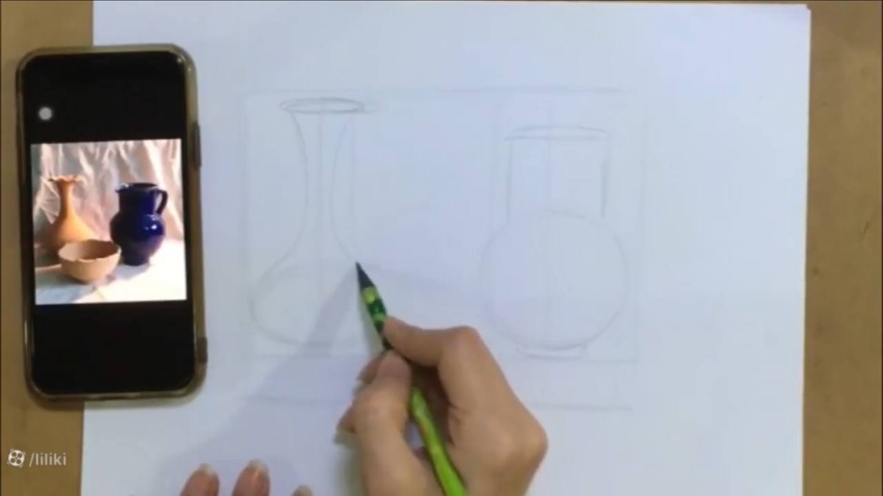 اینم از این. تموم این خط ها و خط مربعی که اول کشیدم خط اضافه است اینا رو هم پاک کنید تا اینکه بریم سراغ طراحی. اتود زدن طراحی کوزه در سایت آموزش نقاشی لیلیکی تموم شد. موفق باشید.