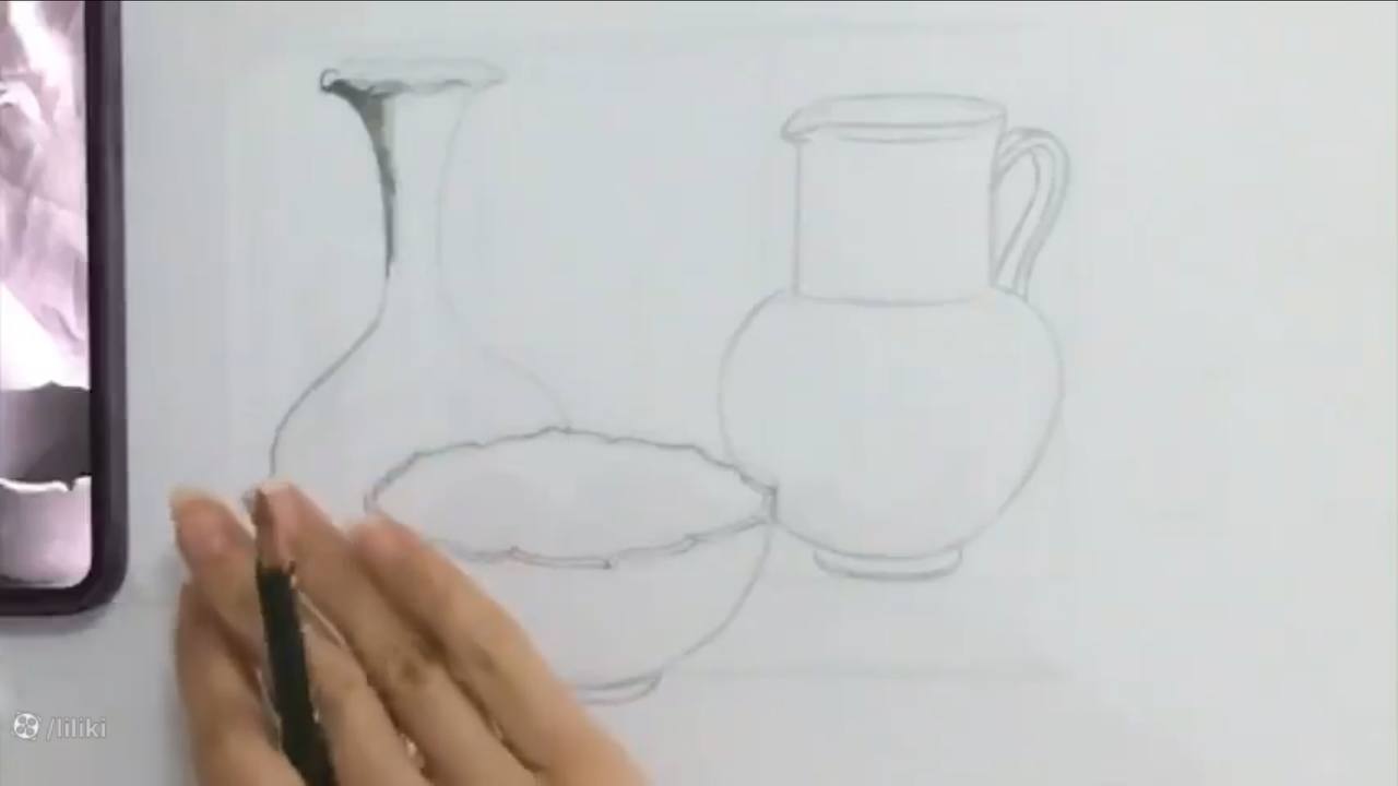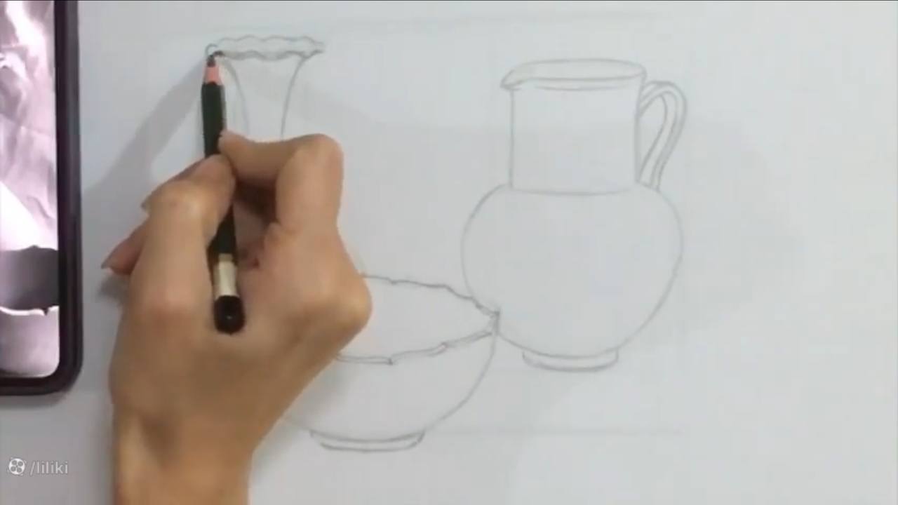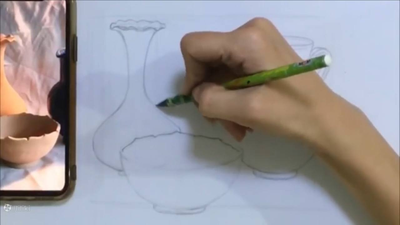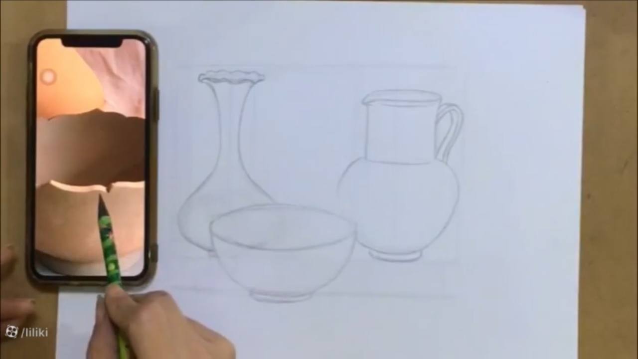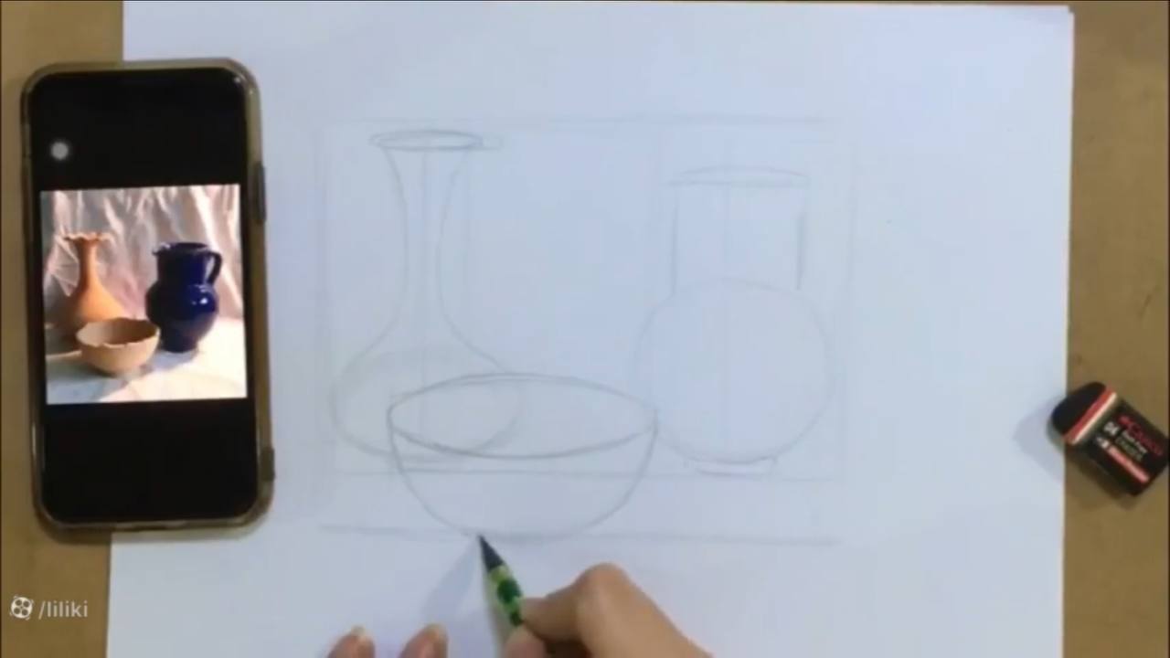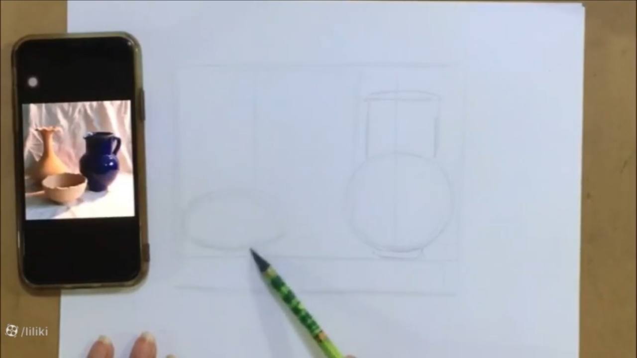 اینم از این. تموم این خط ها و خط مربعی که اول کشیدم خط اضافه است اینا رو هم پاک کنید تا اینکه بریم سراغ طراحی. اتود زدن طراحی کوزه در سایت آموزش نقاشی لیلیکی تموم شد. موفق باشید.