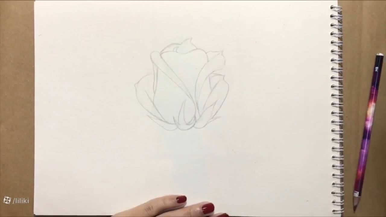 کشیدن طرح کلی نقاشی گل رز حرفه ای