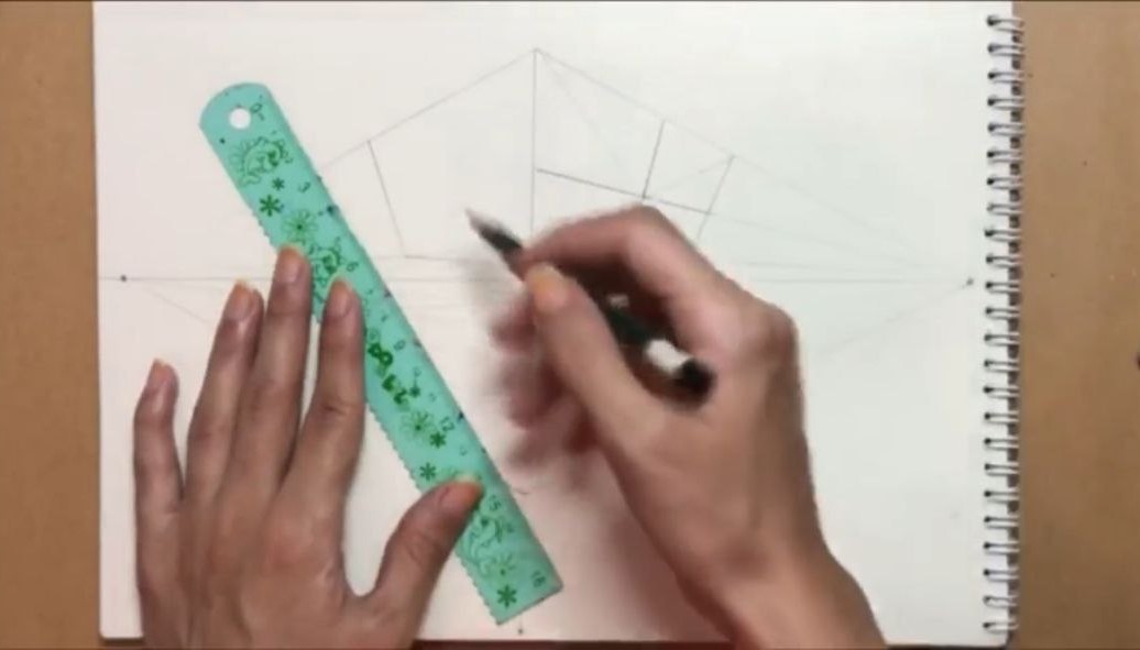 کشیدن خطوط اصلی در پرسپکتیو سه نقطه پله