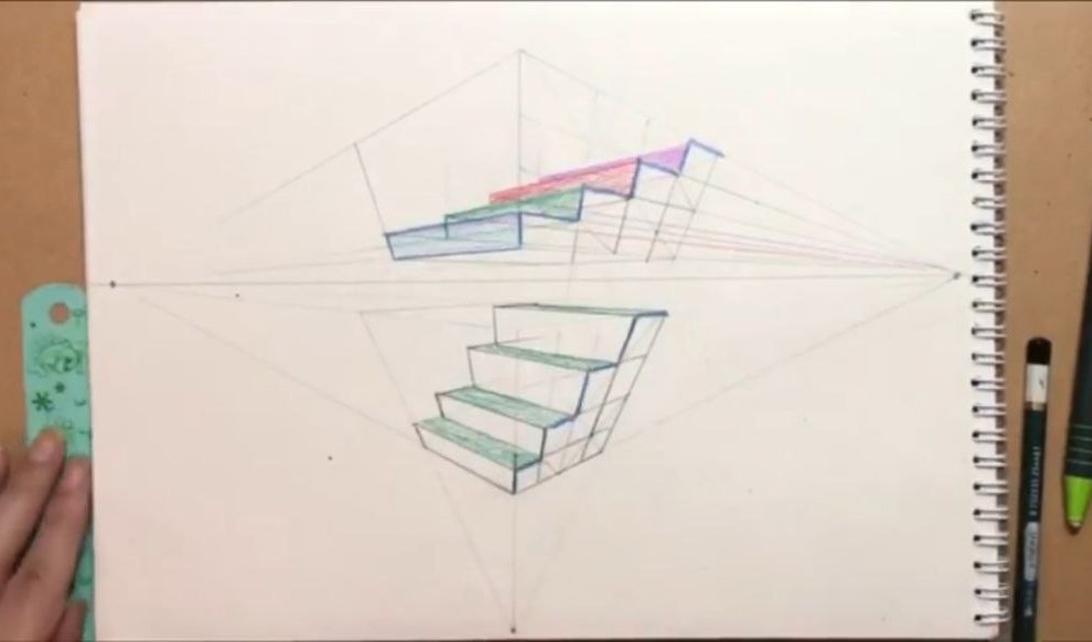 » آموزش نقاشی » آموزش پرسپکتیو » آموزش پرسپکتیو سه نقطه پله