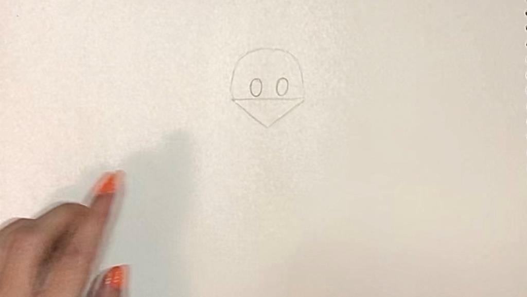 در ابتدا برای کشیدن صورت یک نیم دایره رسم می کنیم. سپس زیر نیم دایره یک مثلث برعکس می کشیم. حالا به عنوان چشم ها دو بیضی عمودی در وسط قرار می دهیم.