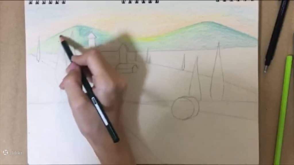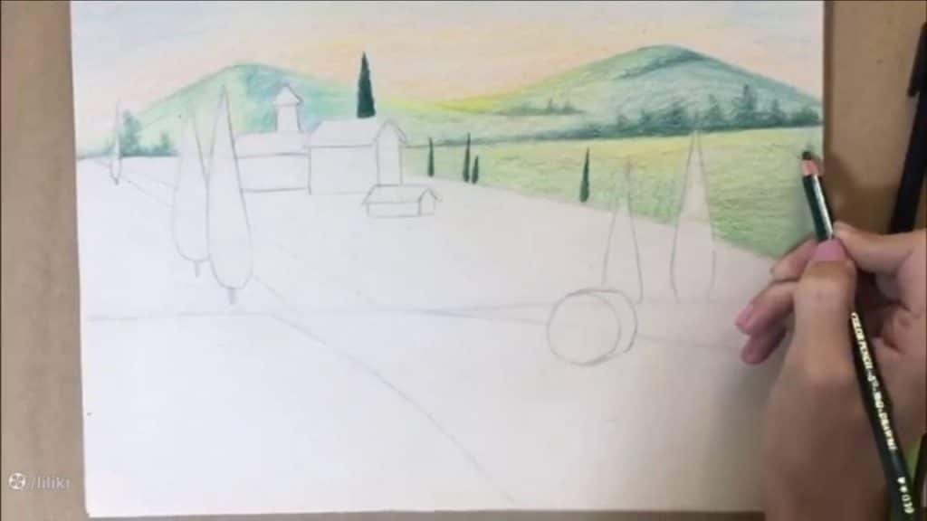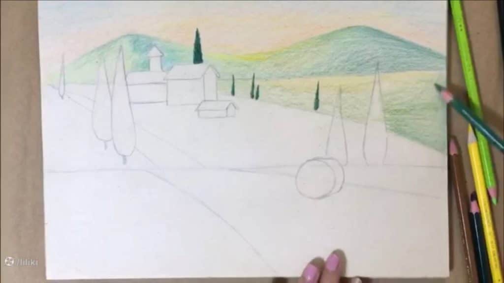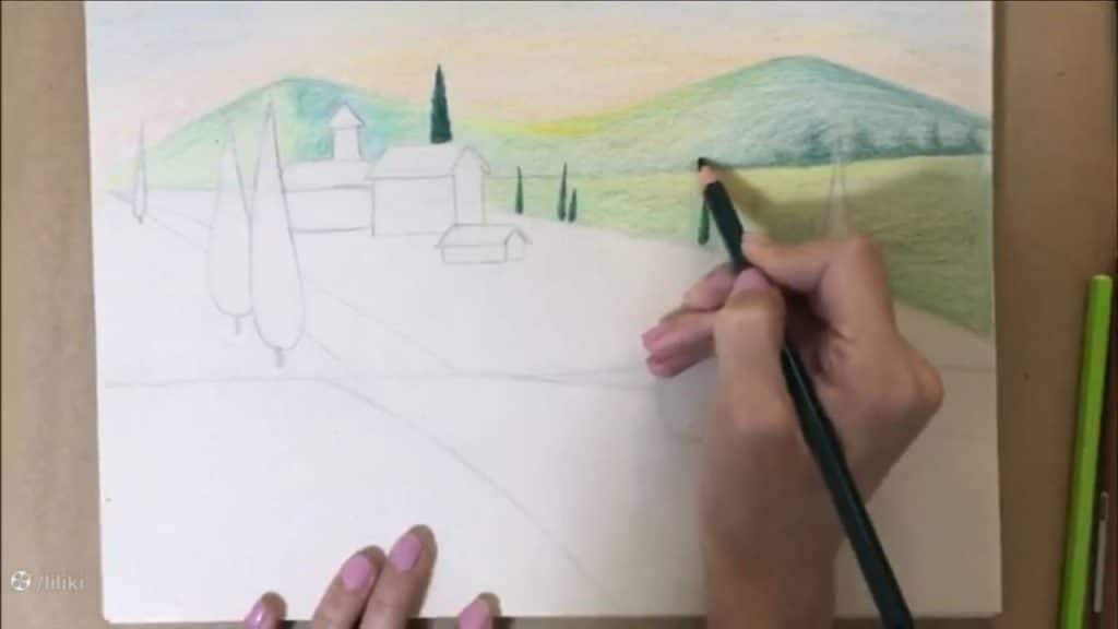 آموزش گام به گام نقاشی منظره با مداد رنگی | نقاشی مزرعه حرفه ای قسمت 2