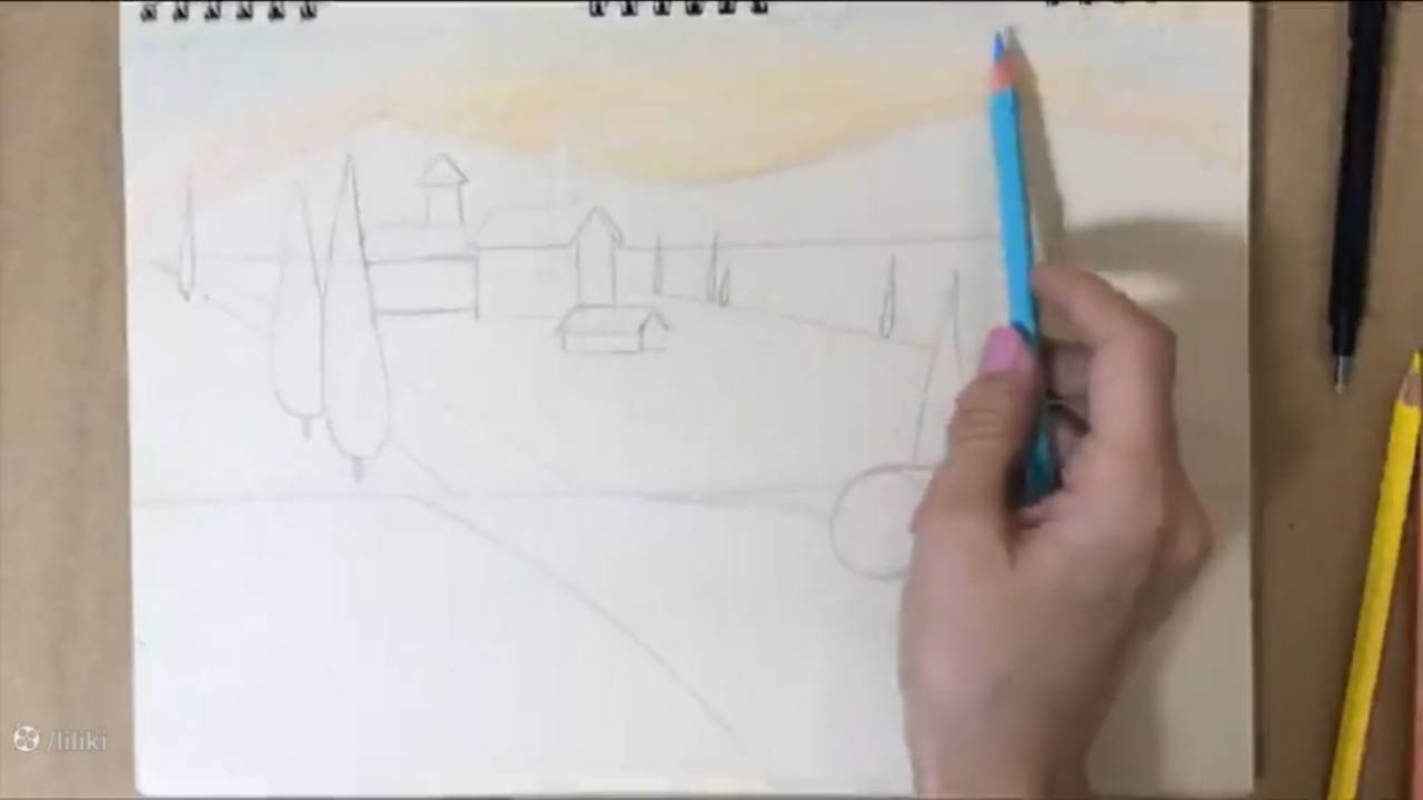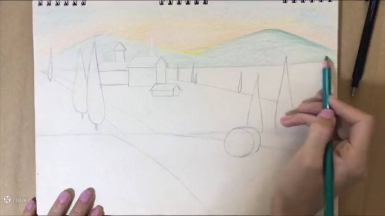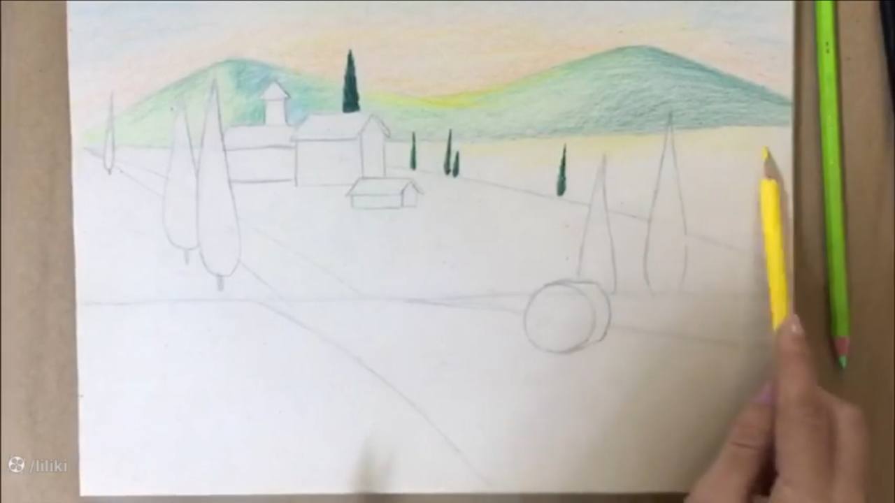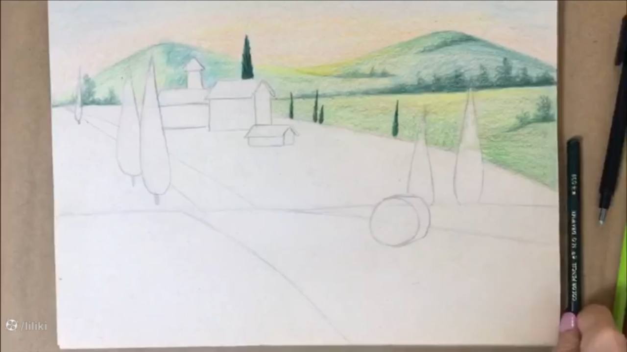 آموزش گام به گام نقاشی منظره با مداد رنگی | نقاشی مزرعه حرفه ای قسمت 2