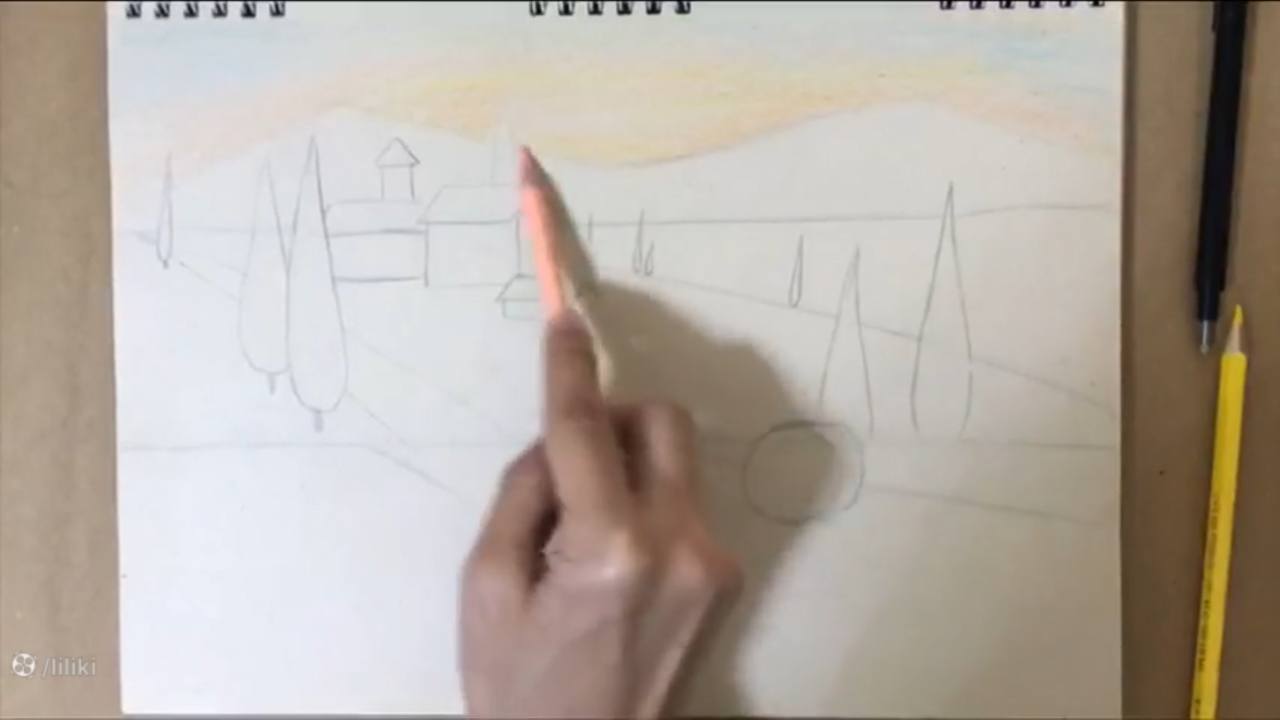 رنگآمیزی آسمان با مداد رنگی