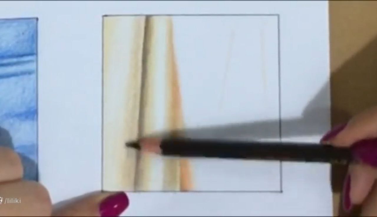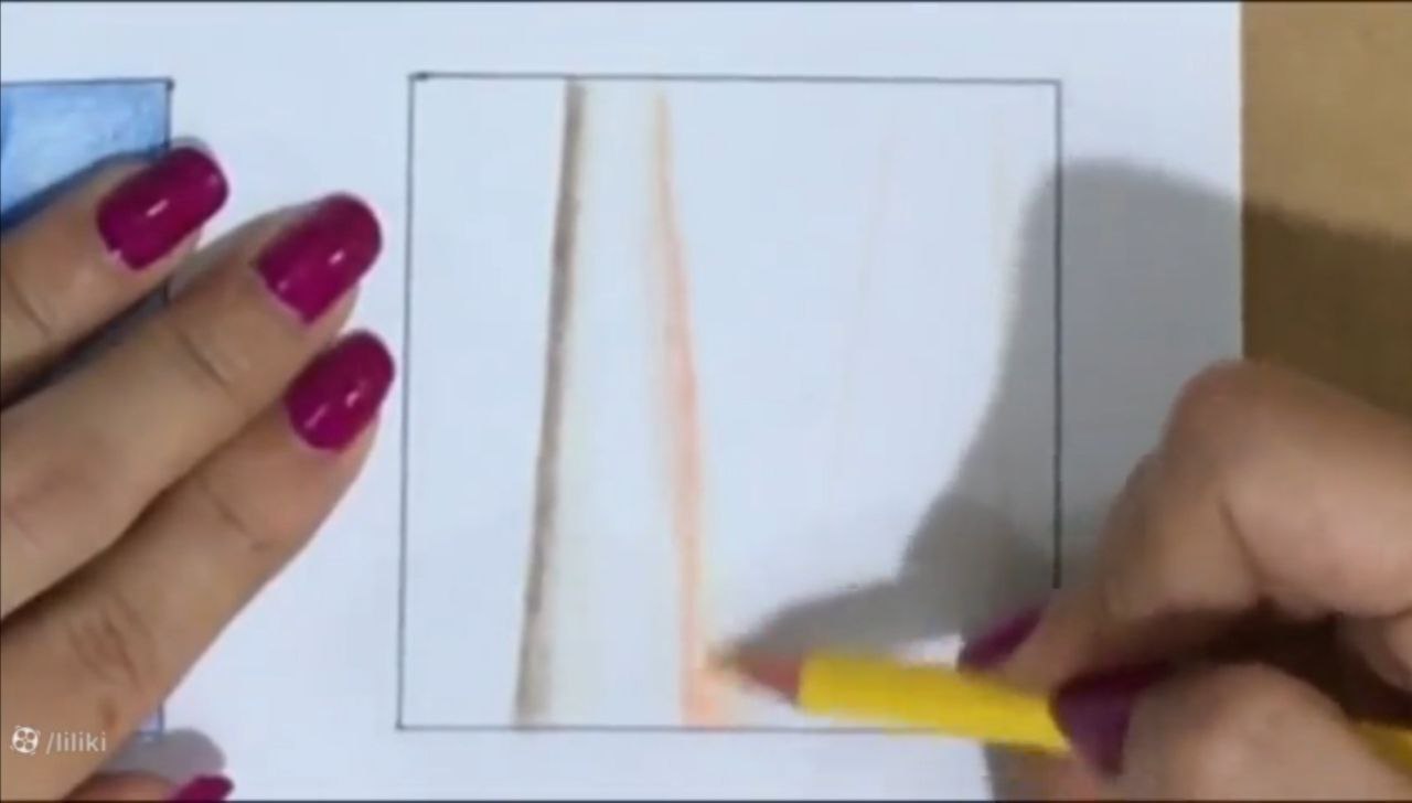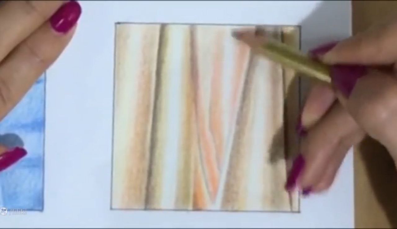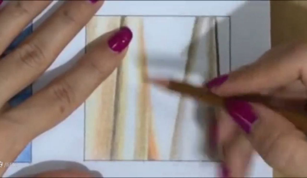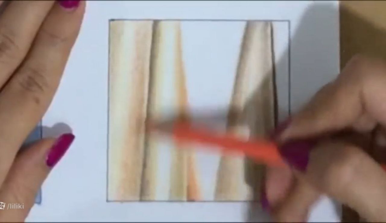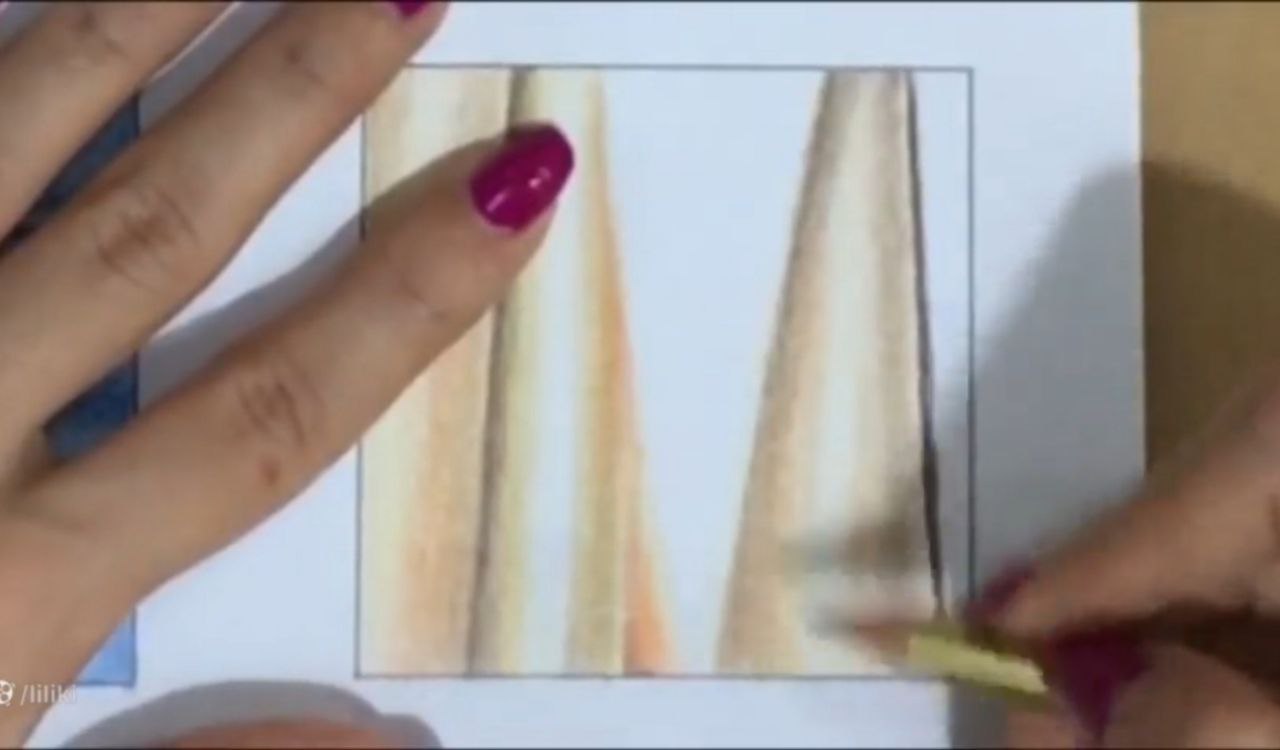 دوباره شماره ۵۹م رو دارم برمیدارم و از رنگش دارم استفاده میکنم یه مقداری روی اون تیرگیها این رنگ رو میزنیم مداد رو میخوابونیم خیلی کمرنگ چون میخوام اون هاله رنگ روشن روش باقی بمونه. از رنگ پوستم استفاده میکنم شماره ۱۶م روی تمام اون قسمتهایی که زده بودیم دوباره داریم تکرار میکنیم. میبینید من اینجا بین این تیرگی و این تیرگی شدید یه هاله روشنی قرار دادم و بعدش از زردم یه مقداری روش استفاده میکنیم. یه ذره اگر بیشتر بخوایم جزئیات اضافه کنیم که کارمون جذابتر بشه یه هالههای تیرگی من اینجوری میبینم بچهها؛ اگر میخواید صافِ خیلی صاف دربیارین میتونین از خطکش استفاده کنین ولی حواستون باشه که خیلی دیگه فشار دستتون زیاد نباشه از دستتون در نره.