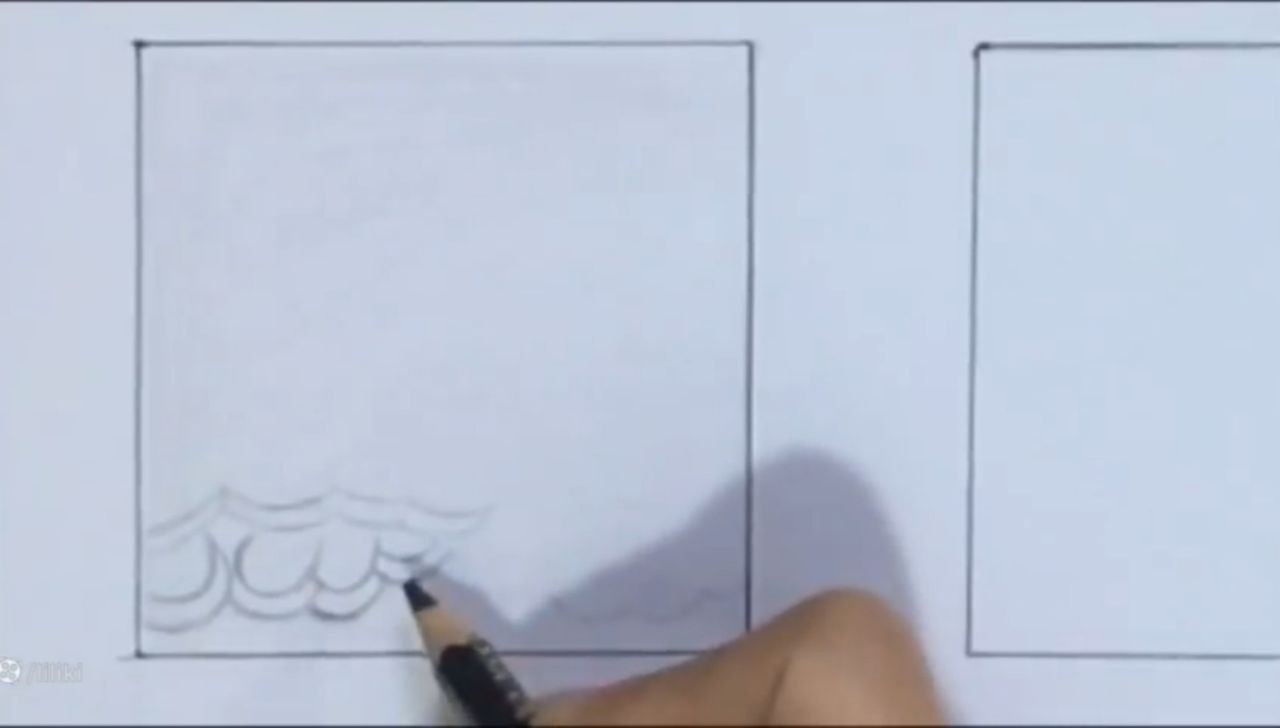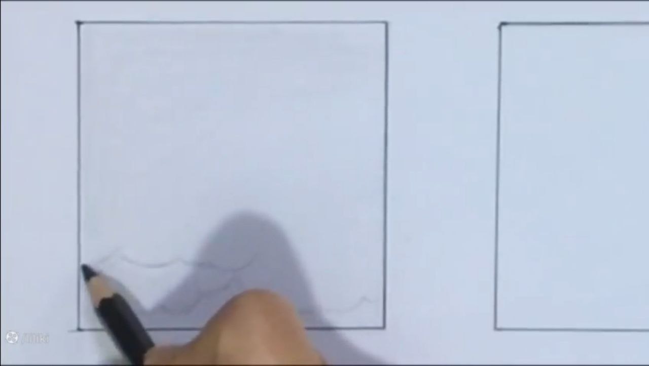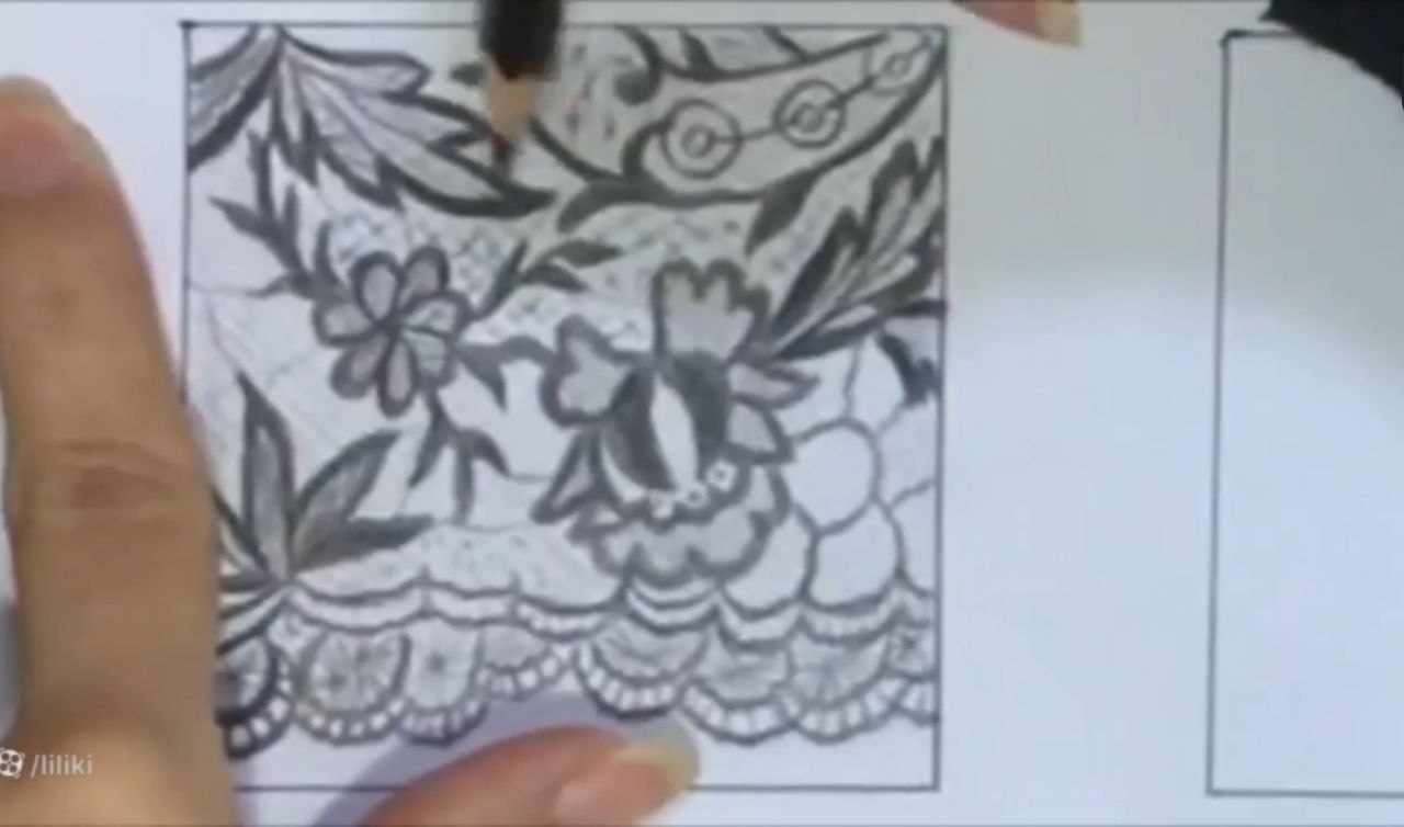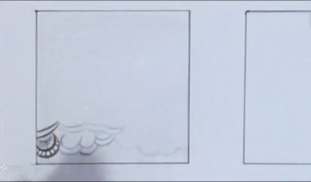 خب من اینجا ببینید دقیقا عین ابر توی نقاشی بچگیامون که میکشیدیم. اینجا یه چیز حدودی کشیدم. با فاصله از این میخوام بالاش حتی طرح توری رو هم. خودتون میتونید به سلیقه خودتون حالا یه تغییر بدید. یا یک مدل اصلا بذارید جلوتون و طبق مدل کار کنید. میتونید قبل از اینکه اصلا شروع کنید به اینکه بک گراندتون رو بزنید. طرح اولیه رو اول بکشید. بعد برید سراغ این مدل طرح زدن. خب من اینجا ببینید چهار تا خونه کار کردم. اینجا هم چهار تا خونه کار کردم. بالاش سه تا اینوری کار کردم. یه دونه اومدم به سمت پایین.