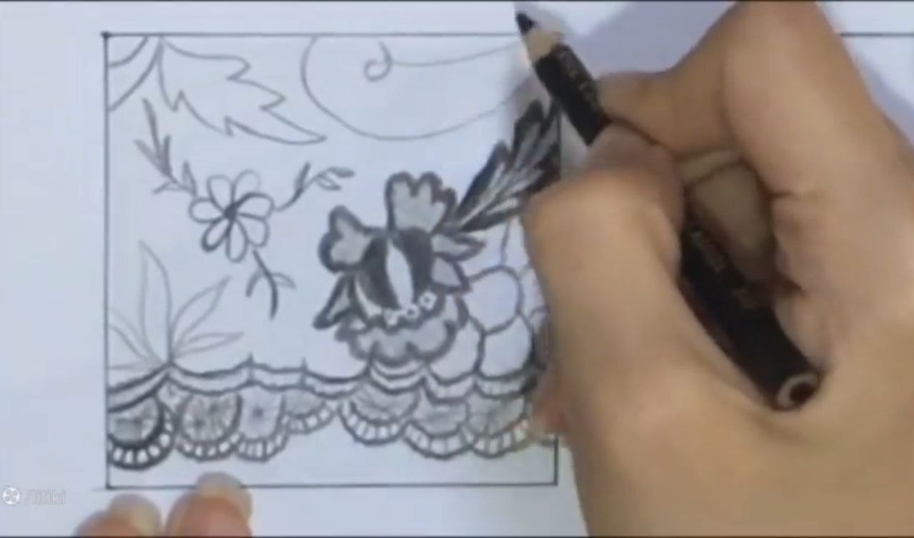 بعد قراره با مداد رنگی مشکیمون نوکش رو تیز کنید. و شروع کنید به اینکه اون طرحی که قراره بزنید رو ریز ریز کار کنید. اگر میخواید میتونید کلاً یک دور طرح اولیه رو خیلی کمرنگ مشخص کنید. یا اینکه یک مرزی مشخص کنید. با همون طوسیتون هم می‌تونید این کار رو انجام بدید. یا اینکه میتونید به جای مداد رنگی از ماژیک هم برای بک گراند استفاده کنید. از ماژیک طوسی. ماژیک تاچ بچه‌ها هر ماژیکی نه. و پاستل گچی و مدادرنگی و هر چیزی که فکر میکنید میتونه کمک کنه. به اینکه یک بک گراند تمیز و شیک داشته باشید.