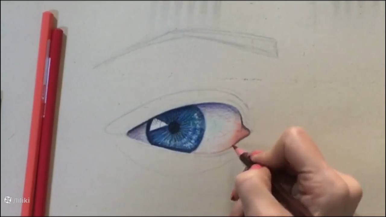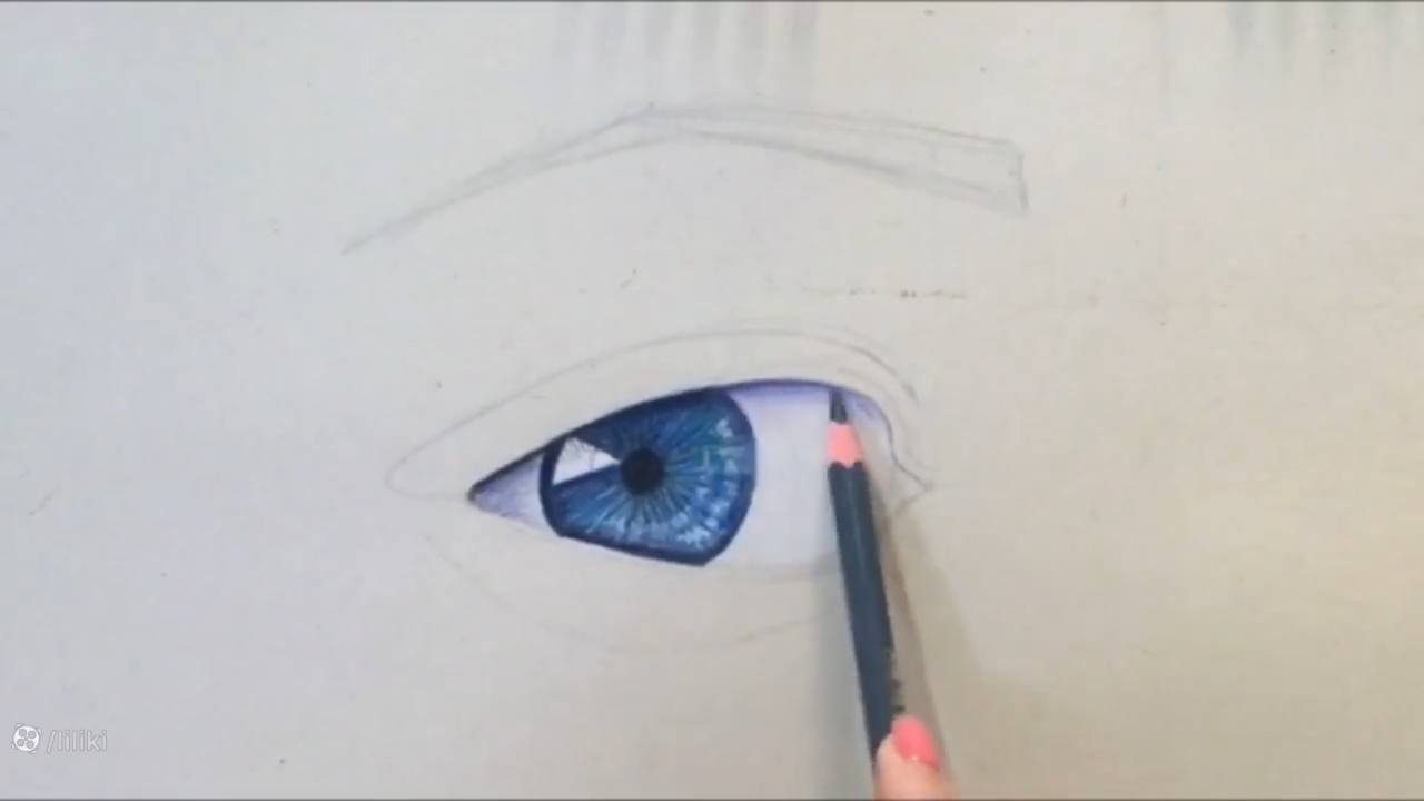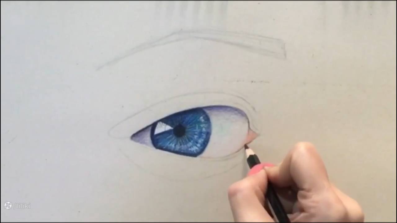 طراحی چشم با مداد رنگی قسمت سوم