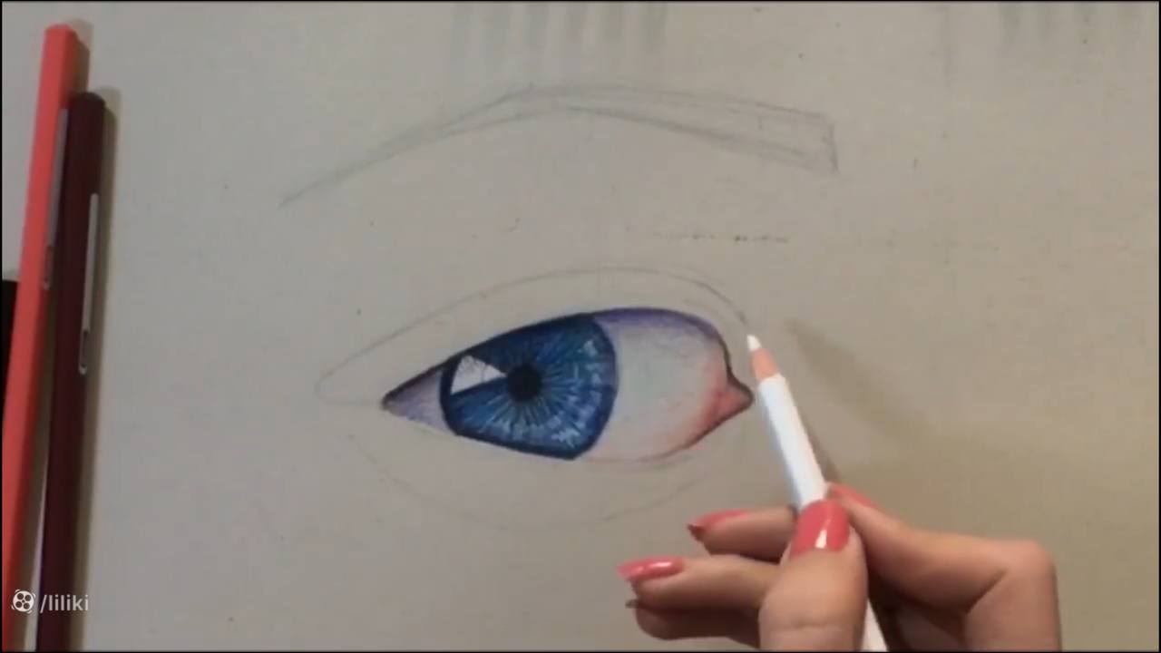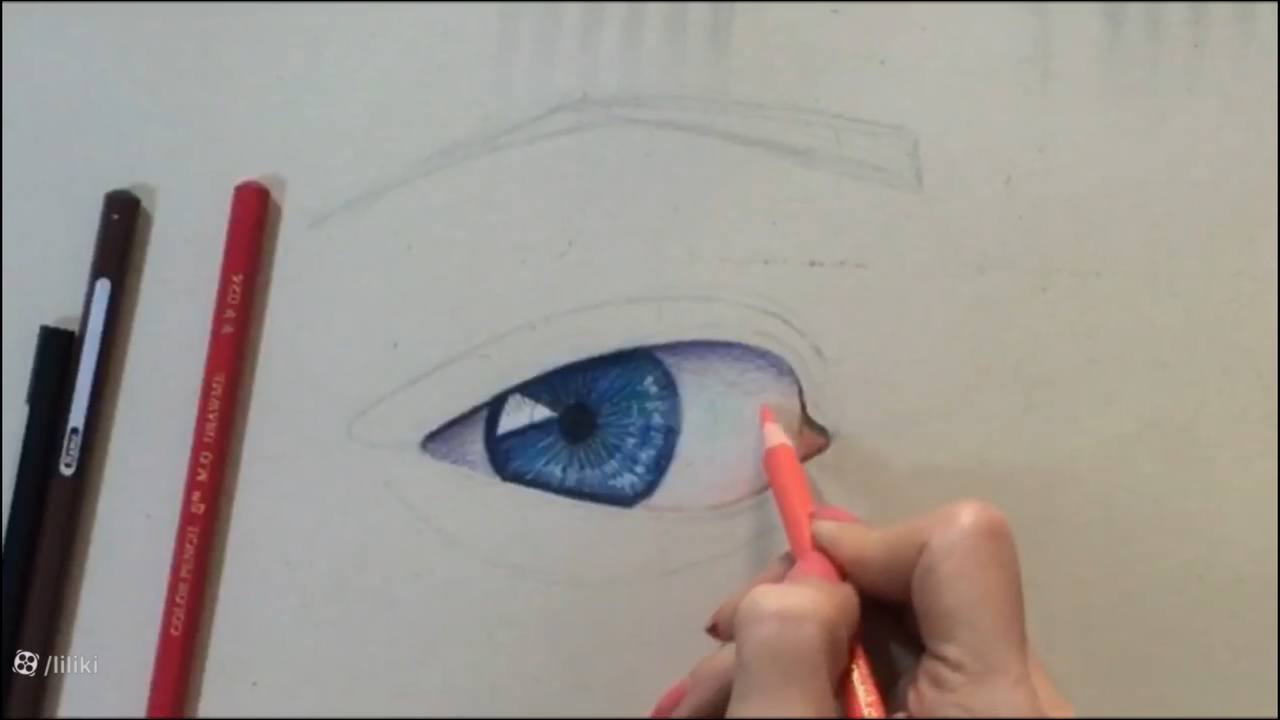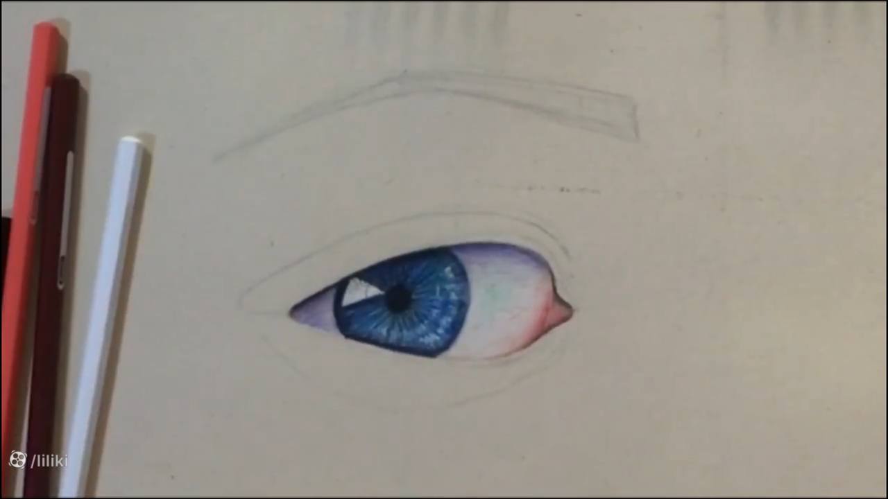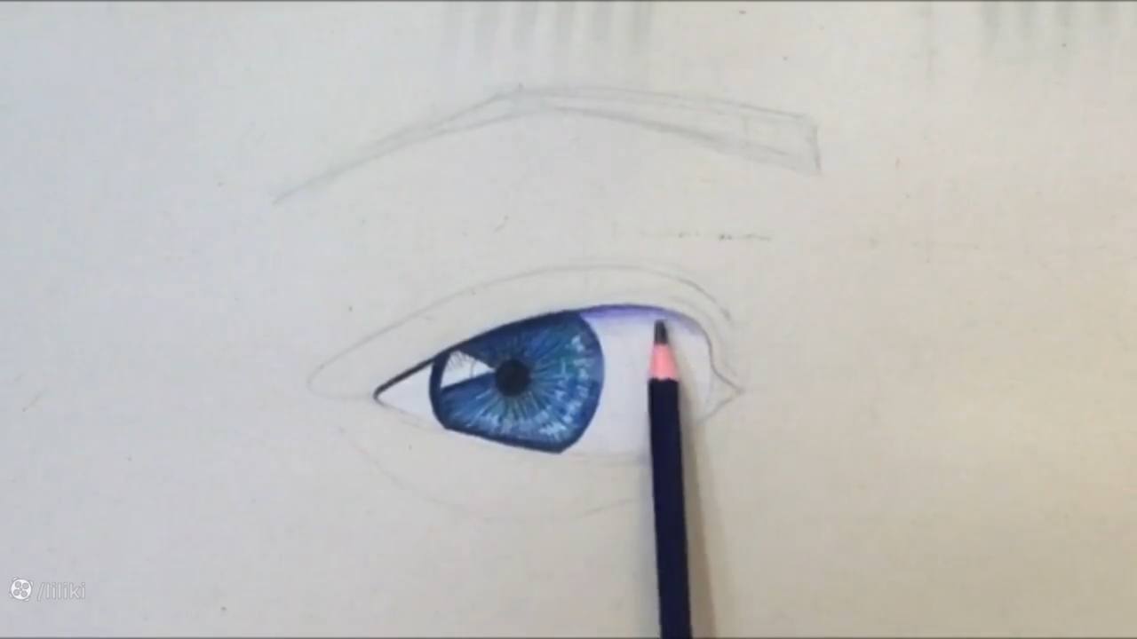 طراحی چشم با مداد رنگی قسمت سوم