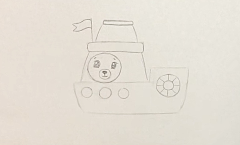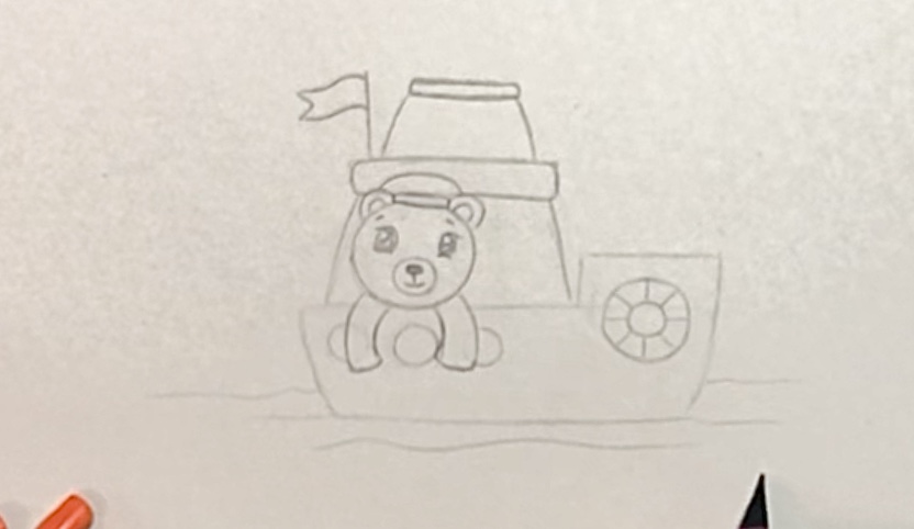 مرحله اول نقاشی خرس ساده کشتی سوار