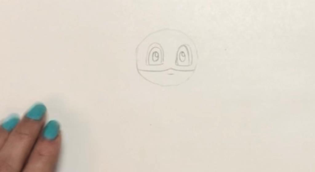 ابتدا یک برای کشیدن صورت دایره رسم می کنیم. به وسیله دو خط منحنی افقی مطابق شکل دایره را به دو نیم تقسیم کنید. پس از آن چشم ها را با دو نیم دایره موازی و یک دایره کوچک درون آن ترسیم می کنیم. لب را با یک خط منحنی کوچک مشخص کنید.