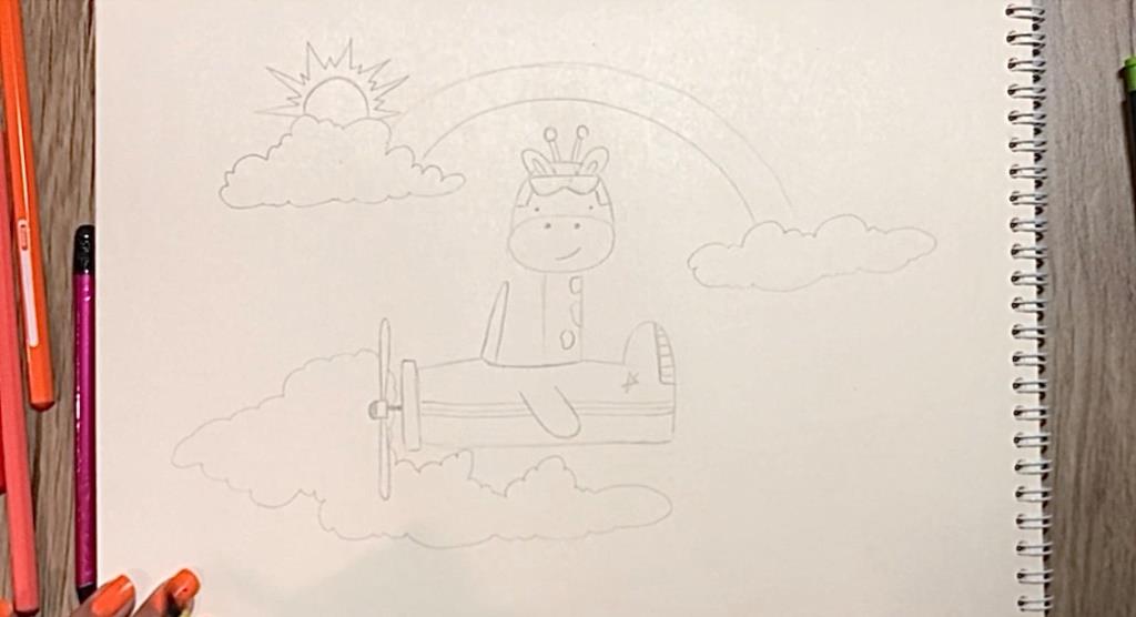 نقاشی زرافه آسان زیبا | نقاشی زرافه کودکانه آسان و هواپیما
