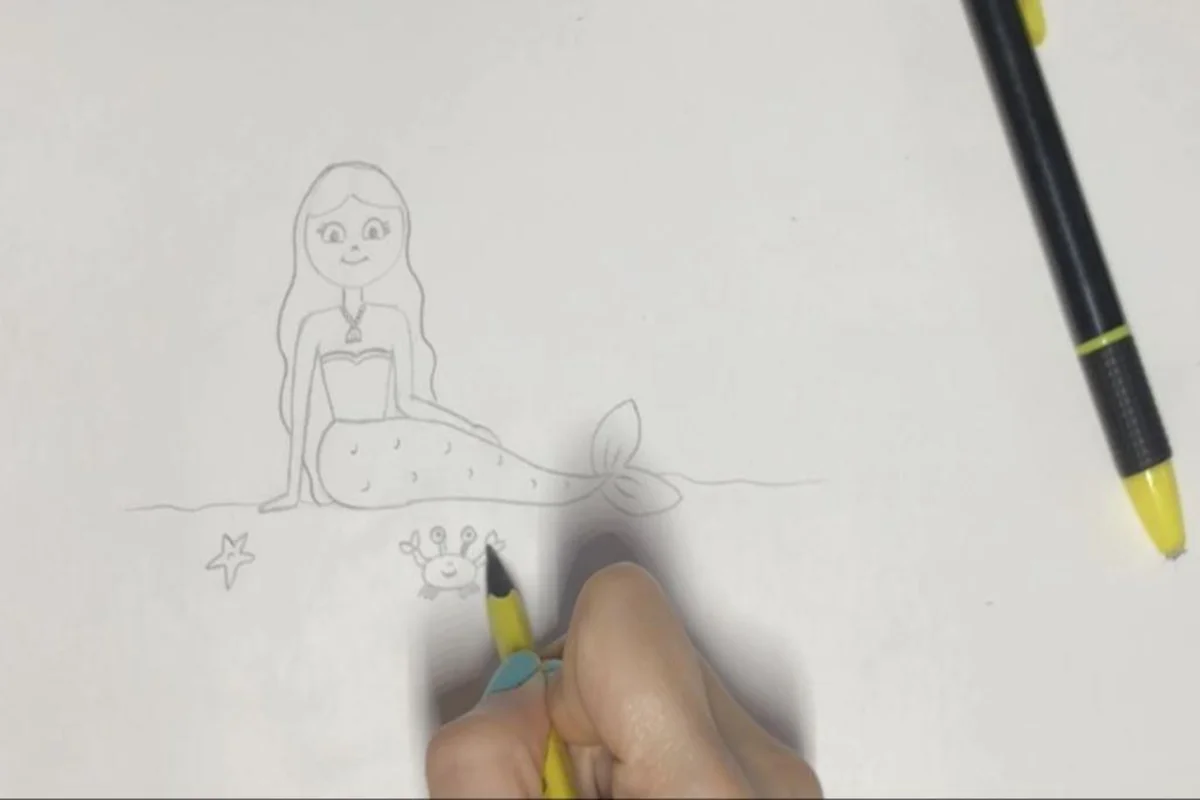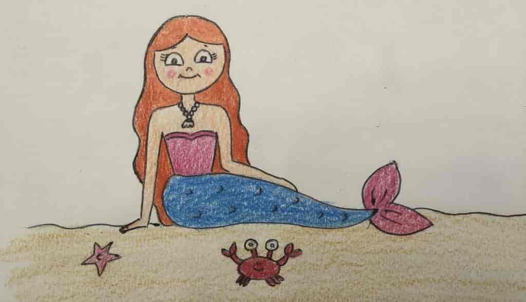 نقاشی پری دریایی دخترانه ساده ، آموزش نقاشی پری دریایی ساده