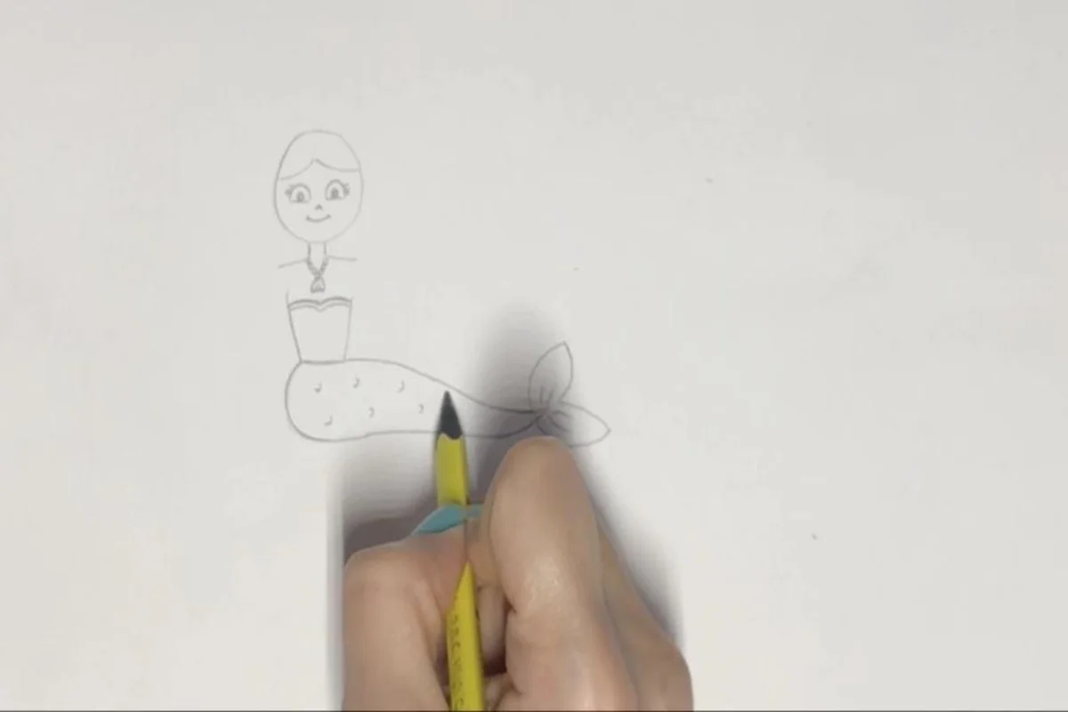 مرحله پنجم کشیدن نقاشی ساده پری دریایی