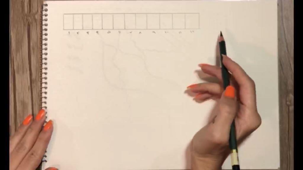در اینجا و با این تمرین ما یاد می گیریم که با یک مداد بتوانیم تیره ترین تا روشن ترین رنگی که آن مداد به ما می دهد را در آوریم. در جدولی که در زیر مشاهده می کنید عدد ۱ تیره ترین رنگ ماست و ۱۲ معمولا سفیدی کاغذ ماست.