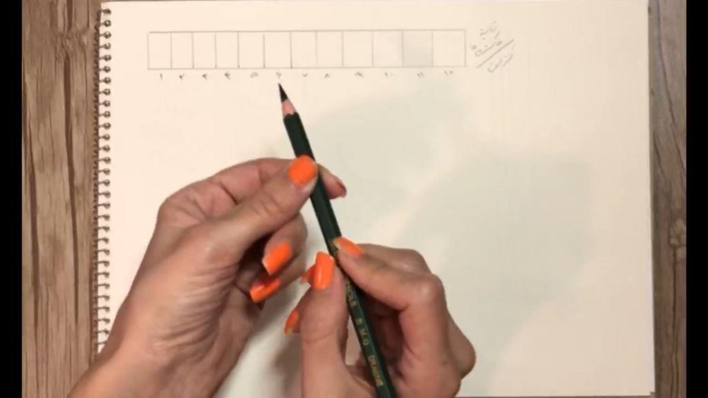 برای اینکه بالاترین درجه روشنی را با مدادتان بکشید راحت ترین کار این است که انتهای مداد را بگیرید و هرچه به سمت تیره تر می روید دستتان را جلوتر بیاورید. حالا برای پر کردن خانه شماره ۱۰ کمی جلوتر را بگیرید.