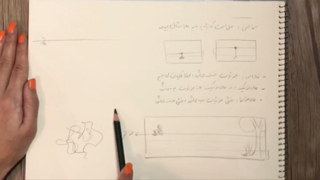 هر چیزی که قرار است از بیننده دور باشد به خط افق نزدیک تر کشیده می شود. هرچیزی هم که قرار است به بیننده نزدیک باشد، در پایین تر کادر کشیده می شود.