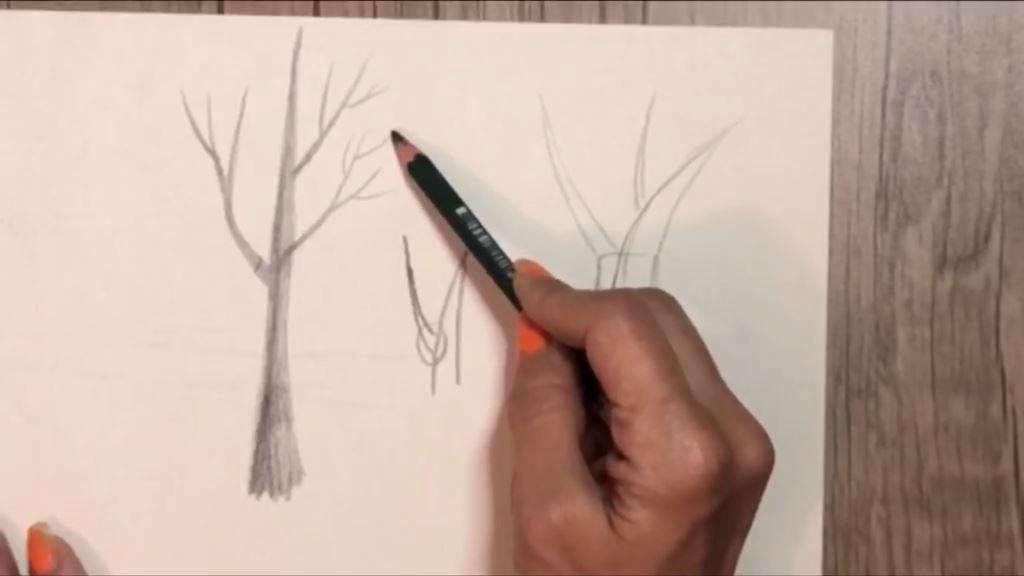 دقت داشته باشید که شاخه ها نباید از تنه خود ضخیم تر شوند. حتما تنه درخت را بزرگ تر از شاخه ها بکشید. از ابتدای نقاشی تان این ها را محاسبه کنید تا اشتباها این کار را نکنید.