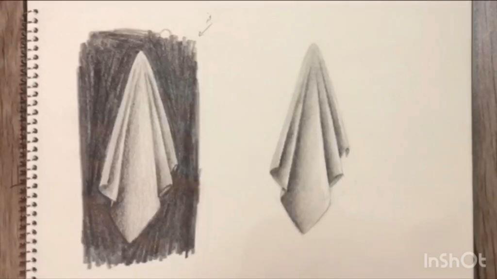 برای کشیدن پارچه همیشه باید فرو رفتگی های پارچه تیره تر باشد. هر چقدر که به سمت برجستگی ها می آید کم کم روشن شود.