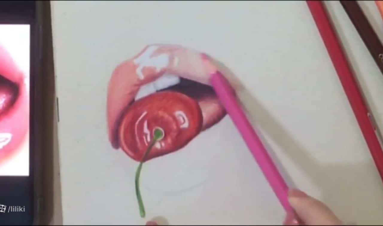 نقاشی لب حرفه ای ۳ با مداد رنگی قسمت سوم