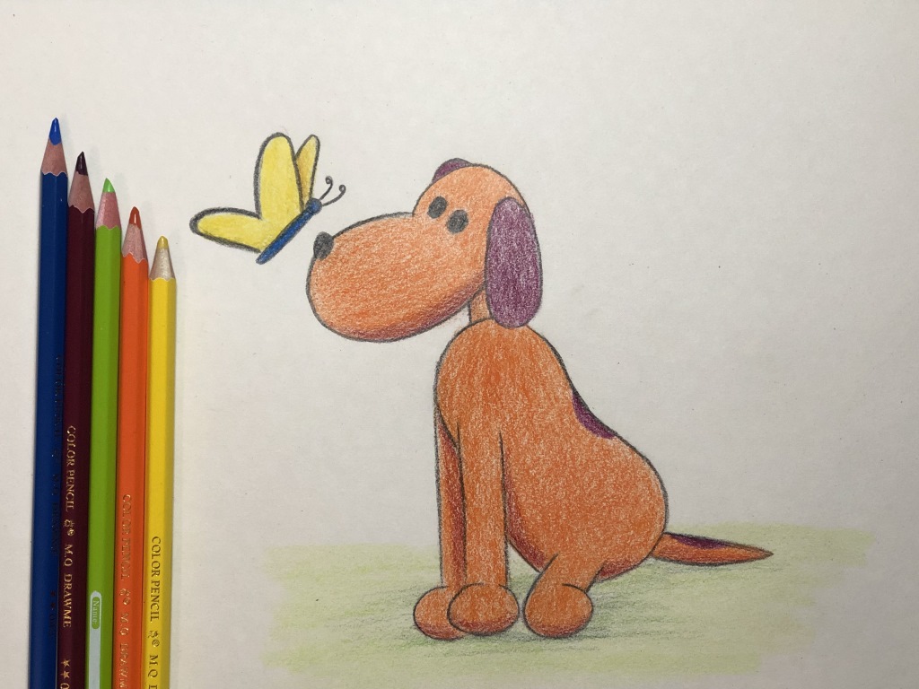 برای رنگ آمیزی ابتدا بدن سگ را با رنگ نارنجیی تیره یا آجری رنگ آمیزی کنید. سپس گوش را هم با رنگ بنفش رنگ کنید. برای رنگ آمیزی پروانه هم از رنگ زرد و آبی و یا هر رنگی که دوست دارید به سلیقه خودتان استفاده کنید.