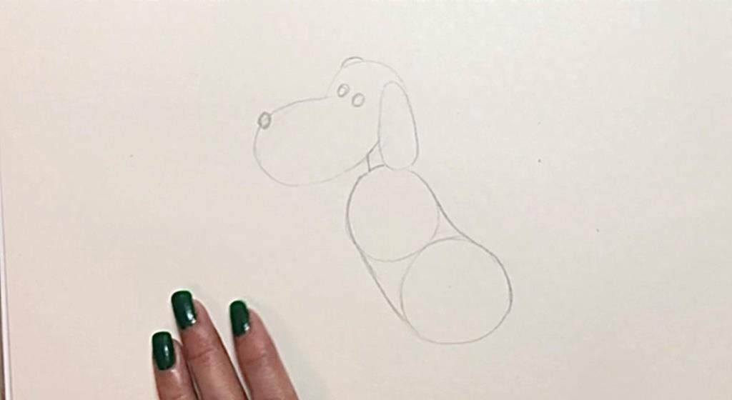 ابتدا برای کشیدن پوزه یک بیضی می کشید و برای عشق سر یک دایره. حالا با دو دایره کوچک چشم ها را رسم کنید. برای کشیدن گوش از بیضی استفاده کنید. بینی را هم با یک دایره توپر بکشید.