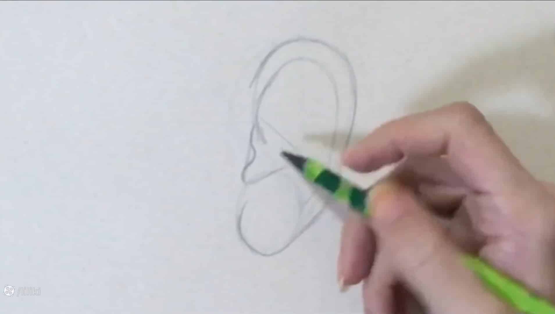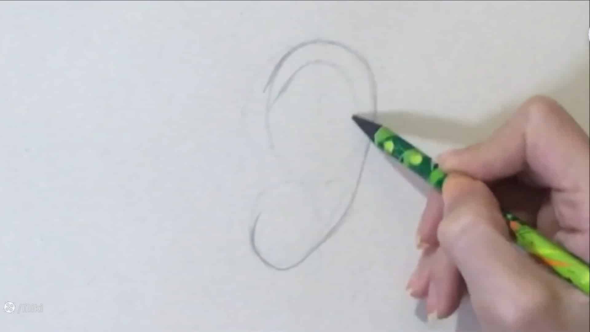 شروع آموزش نقاشی گوش با مداد رنگی (مقدمهٔ فرم‌سازی)