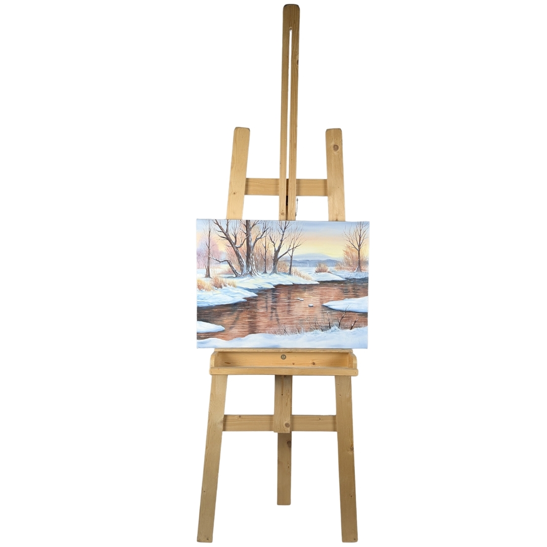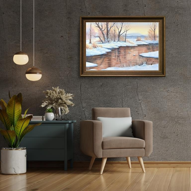 این تابلو تنها یک تصویر نیست؛ حس لطافت زمستان، سکوت برکه و زیبایی طبیعت خوابیده در دل آن موج می‌زند. هنگام نگاه کردن به این اثر، احساس آرامش عمیق در وجودتان جاری می‌شود.