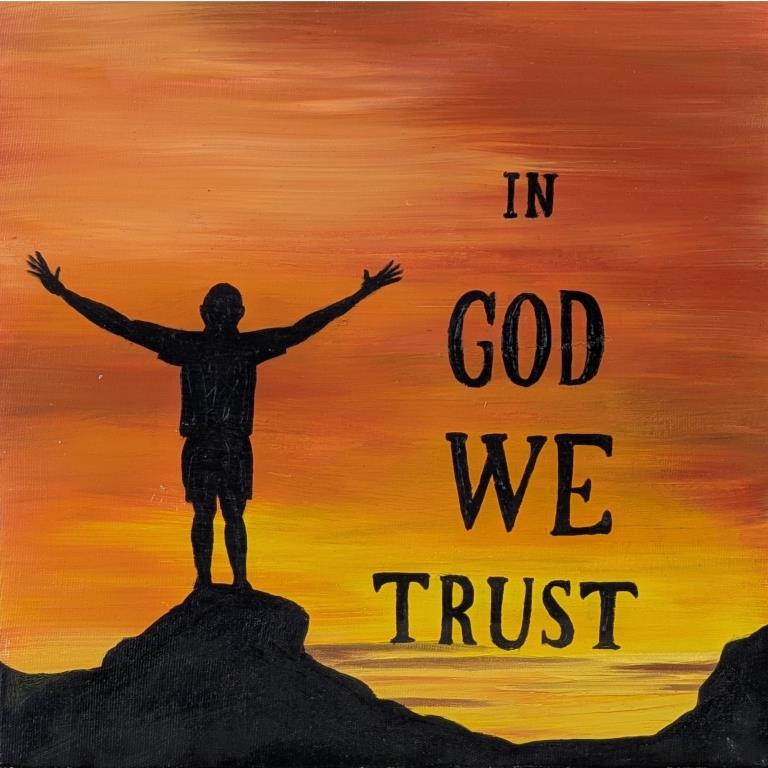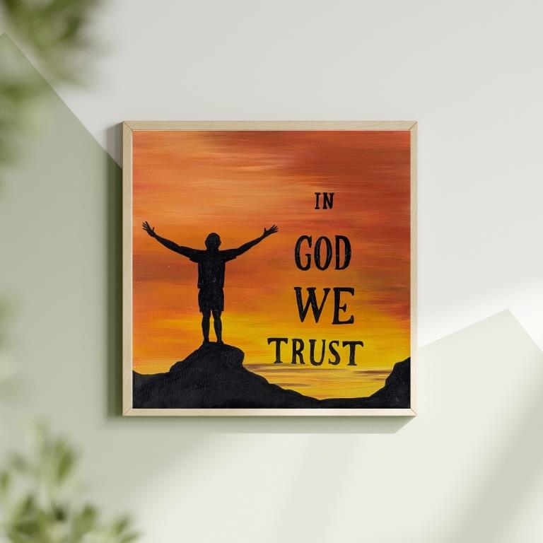 تابلو نقاشی رنگ روغن IN GOD WE TRUST « ما به خدا اعتماد داریم »