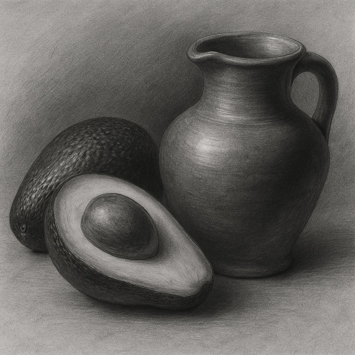 درک نور و سایه، تنالیتهها، بافتها و ساخت عمق در نقاشی. - آموزش طراحی کوزه با سیاه قلم