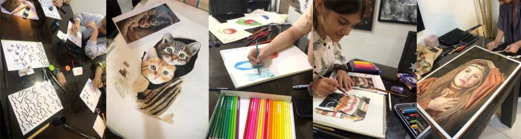 ۱۲ سال مداوم به این کلاس رفتن ادامه دادم. البته از حدود سال ششم، هفتم در پروژه های نقاشی دیواری کار می‌کردم و از سال دهم هنرکده خودم را راه‌اندازی کردم و درآمدم از آموزش نقاشی شروع شد، اما یادگیری را رها نکردم.